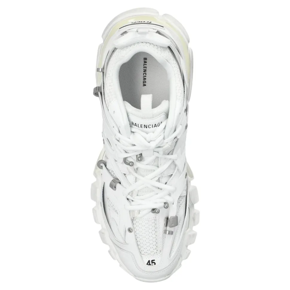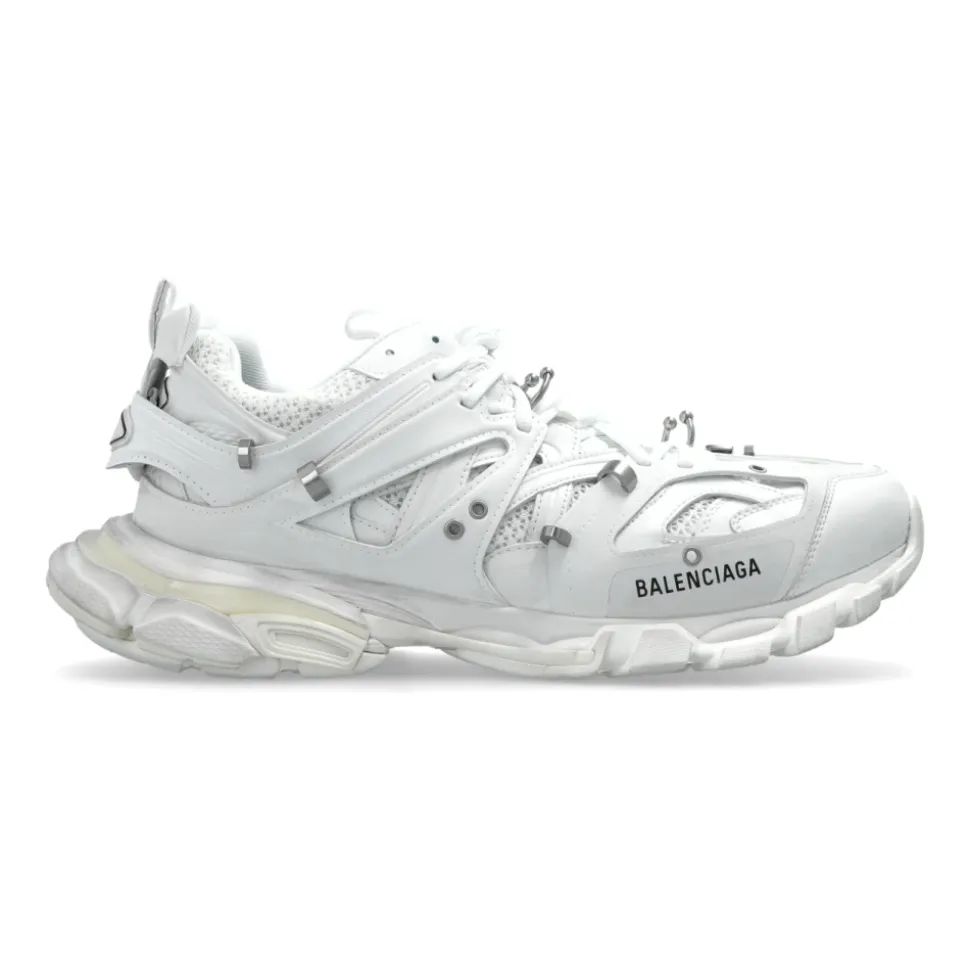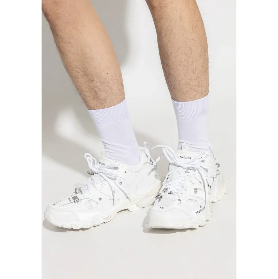 Balenciaga TRACK Sneakers kombinerer en skulpturel, flerlags sål med tekniske detaljer for et dristigt, moderne look. Designet til hverdagsbrug balancerer de iøjnefaldende design med komfortorienteret konstruktion. Nøgleattributter: Hvid | Polyuretan | Polstret hæl for øget komfort | Holdbar flerlags sål for stabilitet | Teknisk, struktureret konstruktion | Snørelukning | Trækstropper på pløs og bagpå | Aftagelige charms (charms variant) | Skulpturel flerlags sål | Lagdelt overdel med synlige overlays | Størrelsesnummer foran | Dristig BALENCIAGA-skrift på sidepanelet | Dimensioner og pasform: Sålhøjde på det højeste punkt: 5 cm | Sammensætning og pleje: Polyuretan | Polyester | Polyamid | Gummi