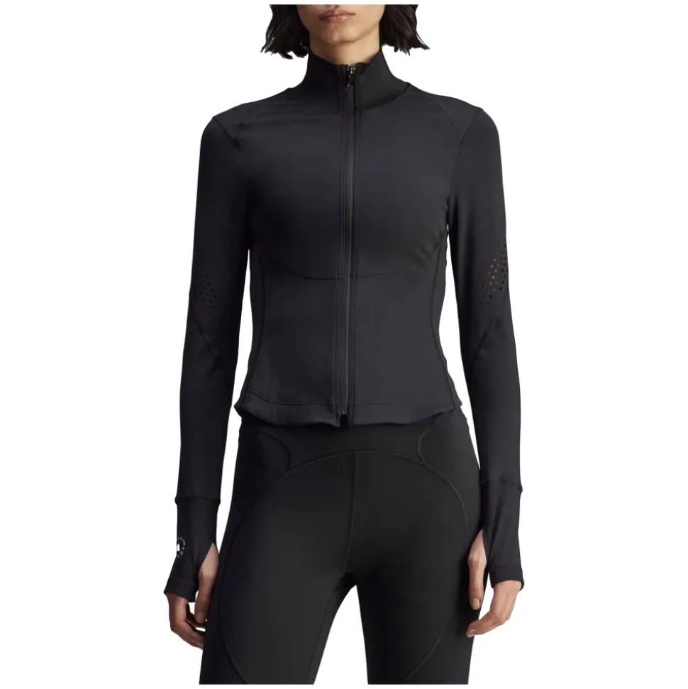 Adidas by Stella McCartney Trænings Midlayer er en slank, langærmet midlayer designet til træning og lag-på-lag-beklædning. Den fremhæver AdiSoft Luxe-komfort og laserskårne ærmedetaljer for forbedret ventilation. Vigtige egenskaber: Sort | Nero | Polyamid | AdiSoft Luxe-teknologi | Forbedret ventilation | Strækstof | Fuld lynlåslukning | Tommelfingerhuller | Lynlåslomme | Høj hals | Lange ærmer | Laserskårne ærmedetaljer | Trykt logo på ærme | Dimensioner og pasform: Modellen er 181 cm høj og bærer størrelse S | Modelmål: Buste 85 cm, Talje 64 cm | Slank pasform | Normal i størrelsen | Sammensætning og pleje: 73 % polyamid | 27 % elastan | Maskinvask kold på et skåneprogram med mildt vaskemiddel; må ikke bleges; må ikke tørretumbles; må ikke kemisk renses; brug ikke skyllemiddel.