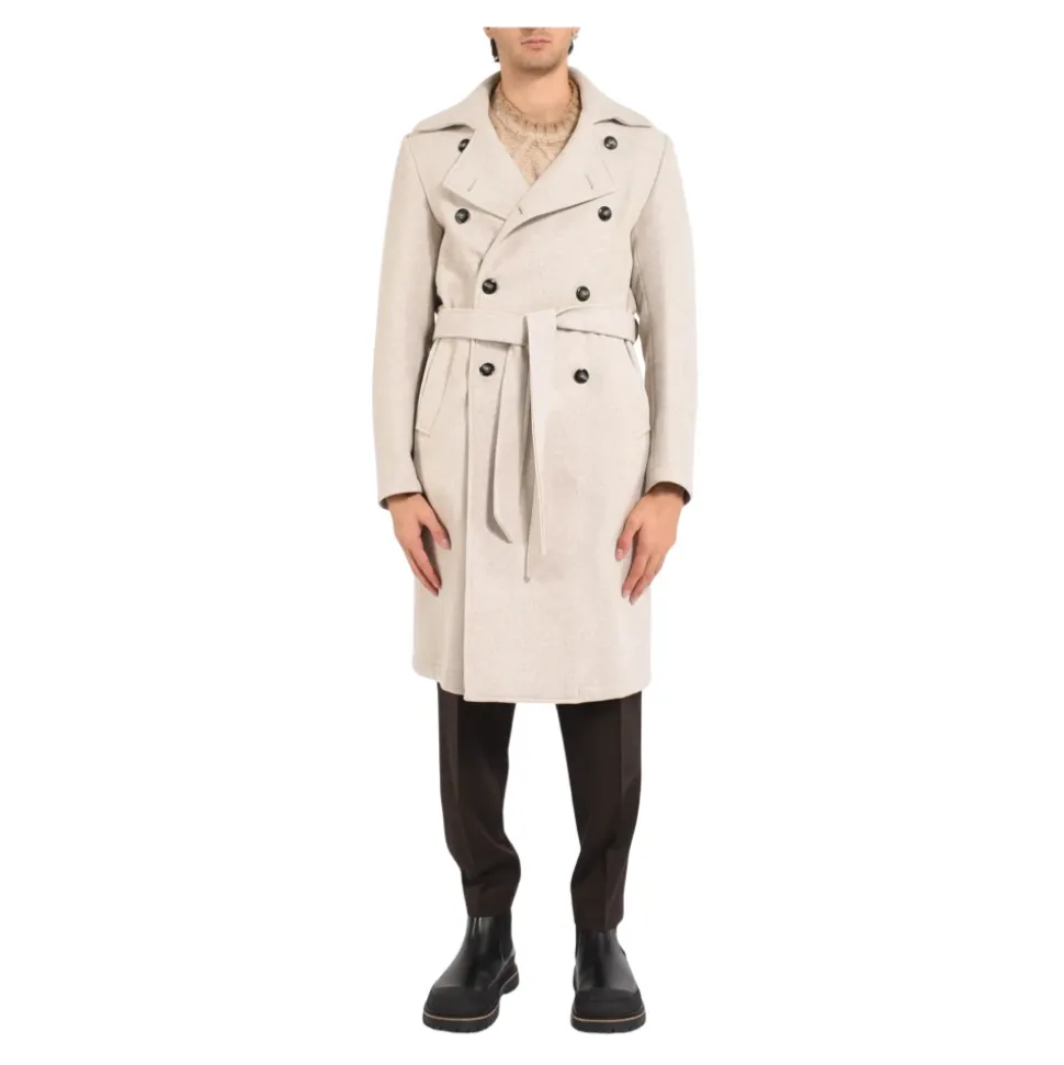 Daniele Alessandrini trenchcoat med en dobbeltradet front og bælte i taljen, designet til en afslappet, oversized silhuet. Vigtigste egenskaber: Beige | Uld | Dobbeltradet knaplukning | Taljebælte | Lanceformet revers | Slids bagpå | Dobbeltradet front | Dimensioner & pasform: Modelhøjde: 1,89 m | Modellen bærer størrelse 48 | Oversized pasform | Sammensætning & pleje: 50% uld | 45% polyester | 5% andre fibre