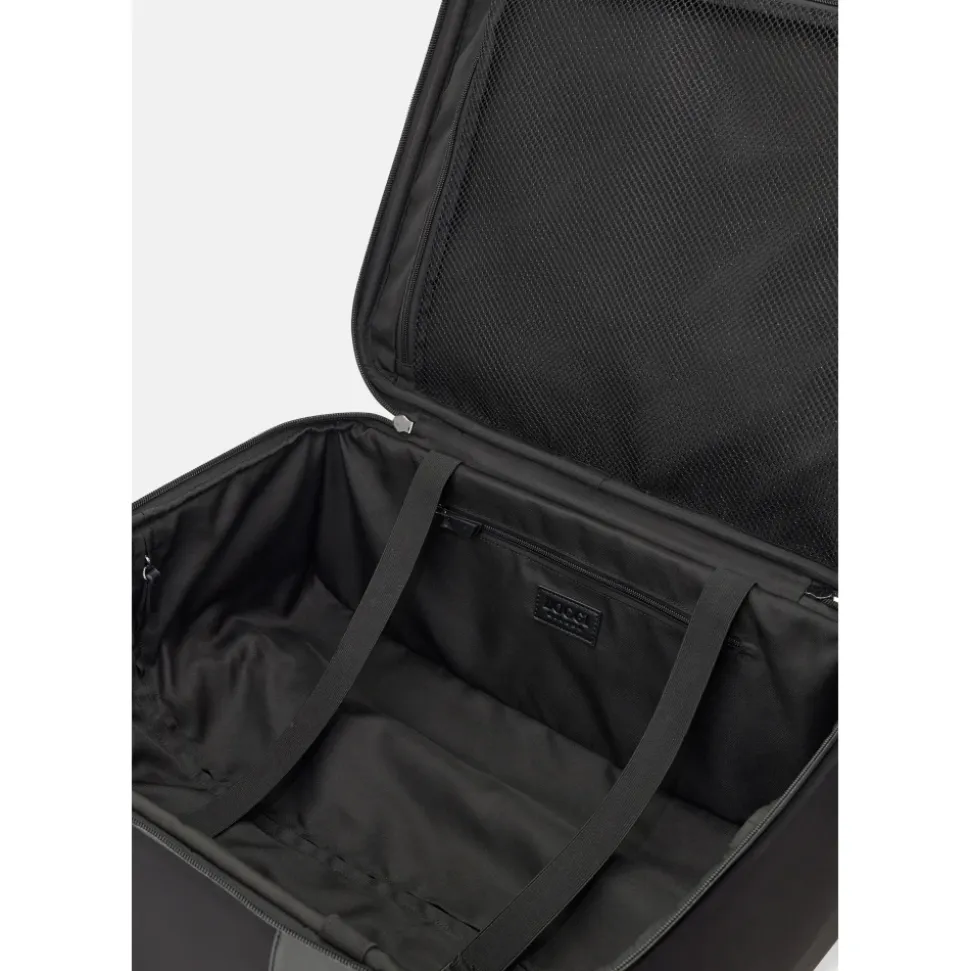 Boggi Milano trolleytaske i teknisk stof er en firehjulet kabinekuffert designet til organiseret rejse. Den har et ydre i mat teknisk stof med kontrasterende detaljer i imiteret læder og et struktureret interiør til at holde tøj og andre nødvendigheder i orden. Vigtige egenskaber: Sort | Teknisk stof | Firehjulet trolleysystem | Rummeligt, organiseret interiør | Lynlåsadskiller i stof | Praktiske indvendige lommer | Dobbelt rem til at fastgøre tøj | Ydre i mat teknisk stof | Kontrasterende detaljer i imiteret læder | Mål og pasform: Bredde: 38 cm | Højde: 55 cm | Dybde: 20 cm | Sammensætning og pleje: Teknisk stof | Imiteret læder