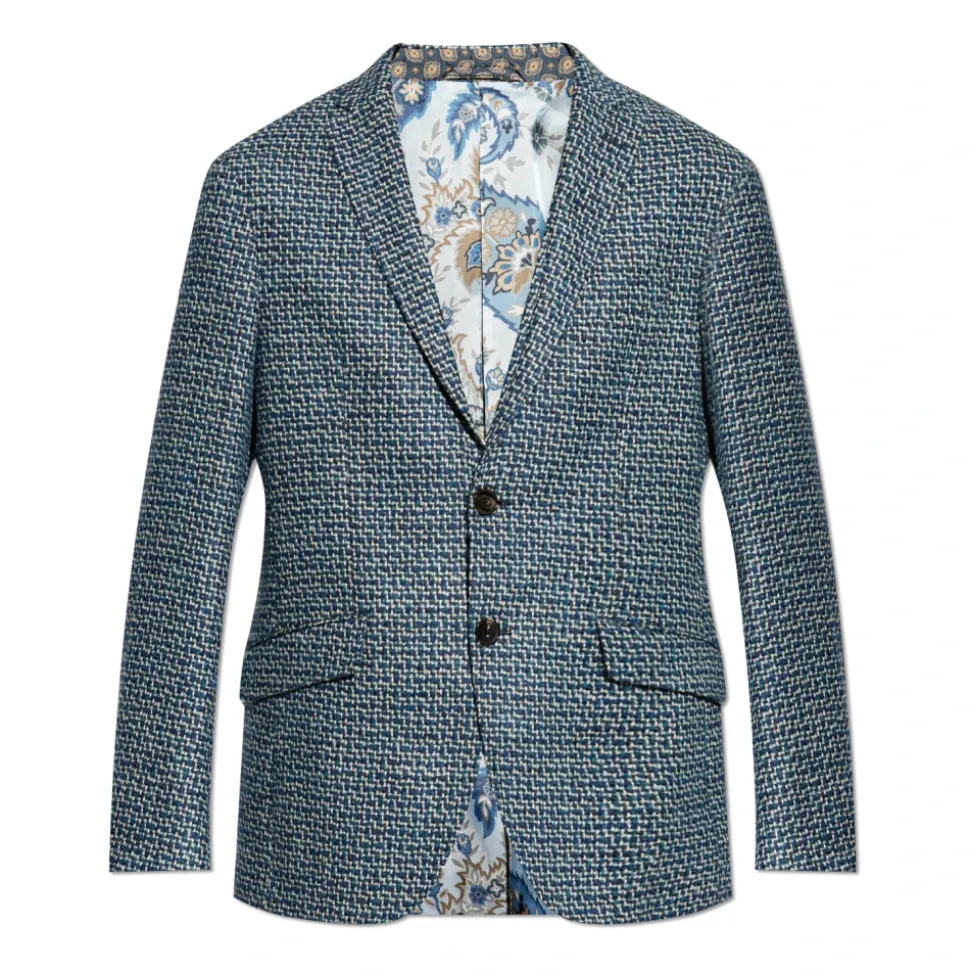 Vi præsenterer den eksklusive blå tweed blazer fra Etro, en blanding af elegance og stil. Fremstillet af tweed af høj kvalitet, tilbyder den et unikt flerfarvet mønster, der tilføjer sofistikering til ethvert outfit. Produkt detaljer: Blå | Hvid | Sort | Tweed | Klassisk reverskrave | To-knaps lukning foran | Dekorative knapper på manchetter | Dimensioner og pasform: Let skræddersyet pasform |