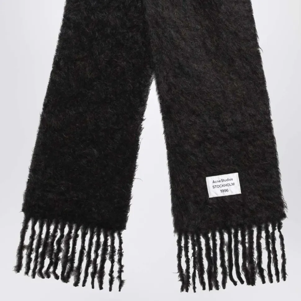 Acne Studios uldtørklæde med logo er et vintertilbehør i mohairblanding, der giver en blød, fuzzy tekstur og en karakteristisk logo-etiket. Designet til varme og alsidig lagdeling, det er velegnet til hverdagsbrug i koldt vejr. Vigtige egenskaber: Sort | Sort melange | Mohair | Varmt | Blød følelse | Fuzzy tekstur | One size | Frynser i enderne | Rektangulær silhuet | Acne Studios logo-etiket | Børstet finish | Frynser i enderne | Mål & pasform: Bredde: 27 cm | One size | Sammensætning & pleje: 71% Mohair | 21% Uld | 8% Nylon