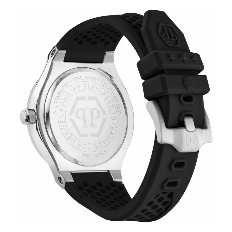 Philipp Plein Underdog fra Philipp Plein er et dristigt statement-ur, der kombinerer robust konstruktion med et markant sort og sølv look. Ideelt til hverdagsbrug, det kombinerer et rustfrit stål urkasse med en komfortabel silikonerem. Nøgleattributter: Sort | Schwarz | Rustfrit stål | Miyota quartz urværk | Ridsesikkert mineralglas | 5 ATM vandtæthed | Komfortabel silikonerem | Holdbar konstruktion | Sølvfarvet urkasse i rustfrit stål | Dristigt statement design | Sammensætning og pleje: Rustfrit stål | Silikone | Mineralglas | Miyota quartz urværk
