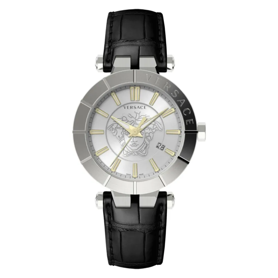 Versace V-RACE 43 mm uret kombinerer italiensk design med præcis kvartstidtagning. Safirkrystal og en læderrem giver et raffineret hverdags-tilbehør. Nøgleattributter: Sølv | Hvid | Sort | Læder | Vandafvisende til 5 ATM | Ridsefast safirglas | Præcist kvartsurværk | Læderrem med foldespænde | Justerbar remlængde | Kvarts urværk | 43 mm rundt urkasse i rustfrit stål | Hvid urskive | Sølvfarvet urkassefinish | Dimensioner og pasform: Urkassediameter: 43 mm | One size med justerbar læderrem | Sammensætning og pleje: Læder | Rustfrit stål | Safirglas | Kvarts urværk | Tør af med en blød klud. Undgå kemikalier og længerevarende udsættelse for vand på trods af 5 ATM-klassificeringen. Opbevares på et tørt sted.
