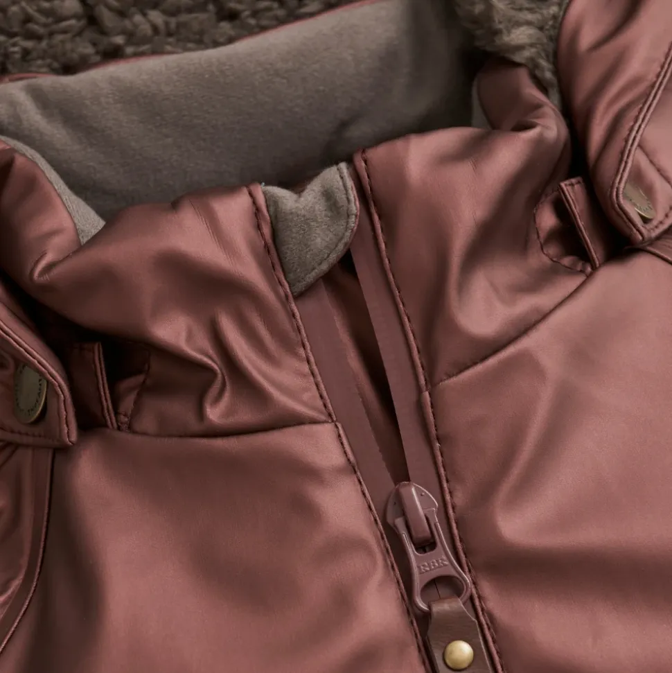 Hold dig stilfuld og tør i regnen med denne En Fant Wholesuit PU Welded Seams. Denne slidstærke junior regndragt i en metallisk bordeaux farve er vindtæt og vandtæt, hvilket sikrer, at dit barn forbliver varm og tør i enhver vejr. Funktioner inkluderer en kvalitets lynlås foran, udvendige lommer, hagebeskytter, aftagelig hætte, justerbare gummistroppe til støvler, reflekterende detaljer og blødt foer. Materiale: 100% polyester. Hold dig beskyttet og komfortabel med denne praktiske og fashionable regndragt. Style nr.: 240215_Andorra.