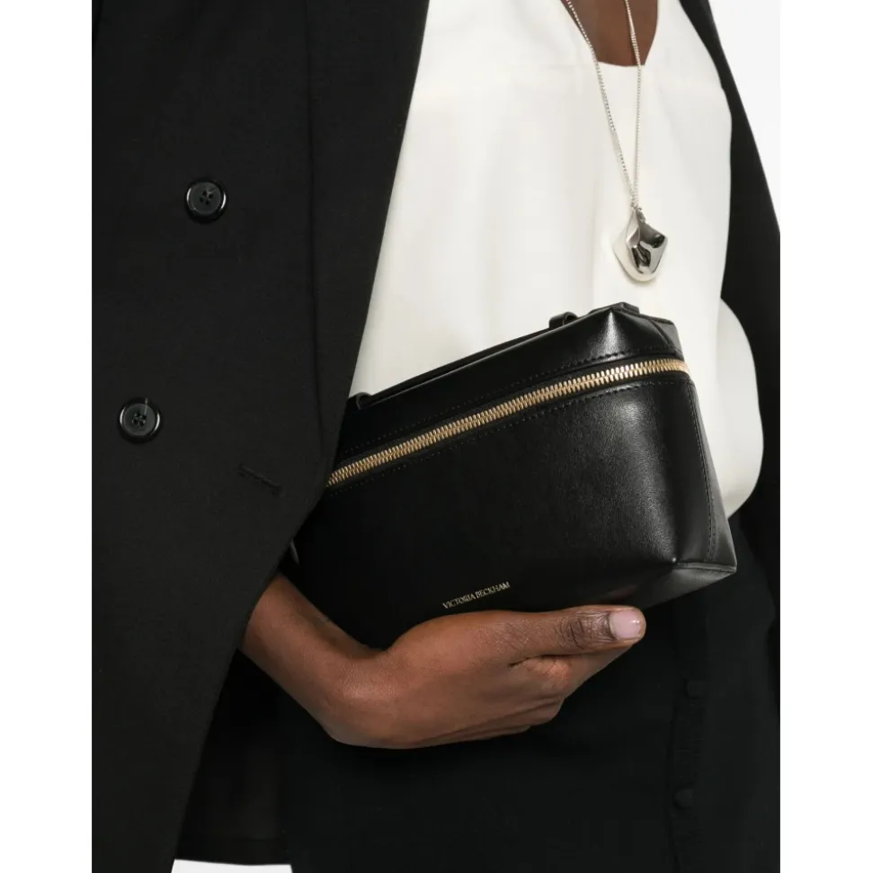 Victoria Beckham Vanity Mini Clutch er en kompakt crossbody-taske i læder, designet til at kunne bæres uden brug af hænder. Den har lynlåslukning, et håndtag foroven samt en justerbar, aftagelig skulderrem, så den let kan omdannes til en clutch. Vigtige egenskaber: Sort | Læder | Justerbar og aftagelig skulderrem | Lynlåslukning | Håndtag foroven | Mini silhuet | Clutch-stil | Konvertibel crossbody-design | Sammensætning & pleje: Læder | Aftørres med en blød klud. Professionel læderrensning anbefales.