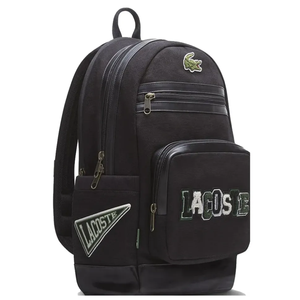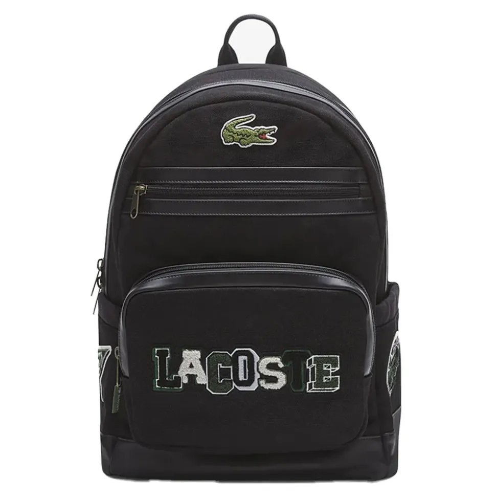 Lacoste Varsity Backpack kombinerer et maxi-logo i college-stil med en struktureret canvas-krop, hvilket giver et sporty, effektfuldt look og praktisk opbevaring til hverdagsbrug. Vigtige egenskaber: Sort | Nero | Bomuld | Struktureret, slidstærkt canvas for pålidelig brug | Frontlomme med fremtrædende logo | Rummeligt hovedrum | Gummi-krokodillemærke på øverste del | Maxi-logo i college-stil på frontlommen | Rene linjer og moderne sporty silhuet | Kontrasterende kantdetaljer | Sammensætning & pleje: 100% Bomuld | Følg plejeinstruktionerne på mærket indeni.