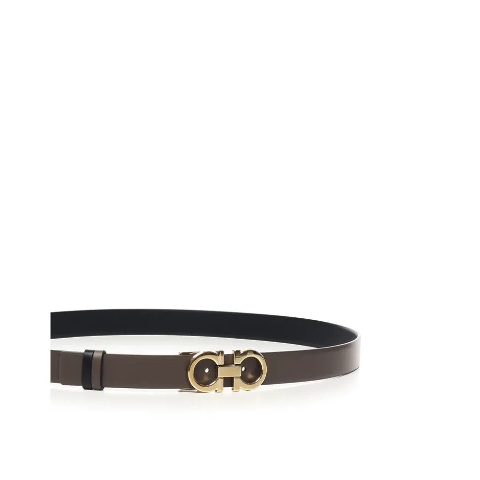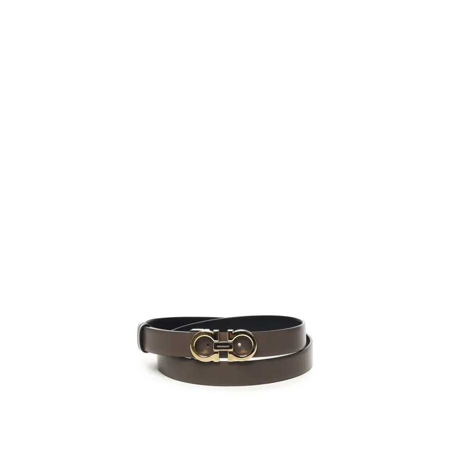 Forhøj din stil med dette Ferragamo bælte til kvinder, der er vendbart og justerbart, lavet af kalveskind i Italien. Med en dobbelt Gancini spænde er dette bælte både alsidigt og elegant. Fås i brun og sort.