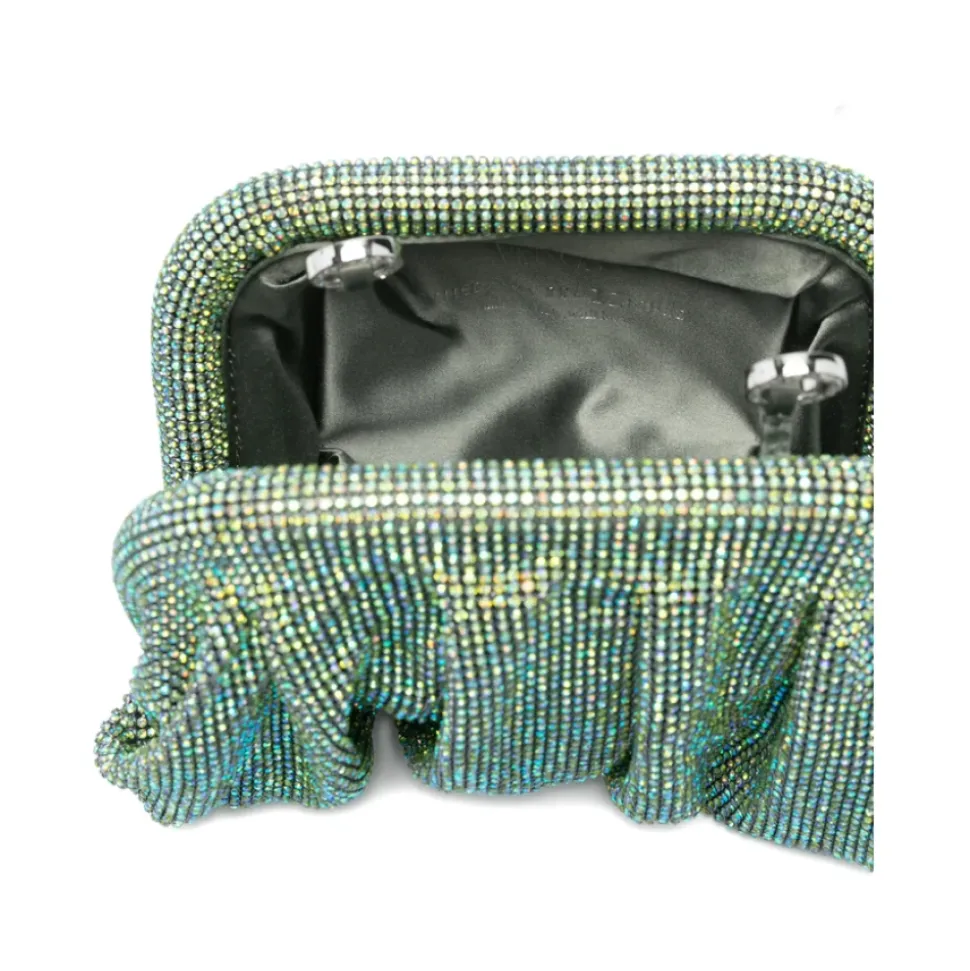 Benedetta Bruzziches Venus La Petite er en hånddekoreret aften-clutch designet til at fungere som et juvel-lignende tilbehør til aftener i byen. Dens krystalbesatte aluminiumsnet og satinpung tilbyder kompakt opbevaring med iøjnefaldende glans. Nøgleattributter: Grøn | Blå | Aluminiumnet | Aftagelig metal kædestrop | Hængsel-struktureret fuldt åbnende top | Satin inderpose | Ingen inderlommer | Krystal-rhinsten udsmykning | Bølget rynket silhuet | Håndsyede detaljer | Aften-clutch form | Mål & pasform: H: 12 cm | B: 22 cm | D: 5.5 cm | Sammensætning & pleje: Eksternt: 100% aluminiumsnet besat med krystalrhinsten | Internt: 100% silke satinpose | Tør af med en blød klud.