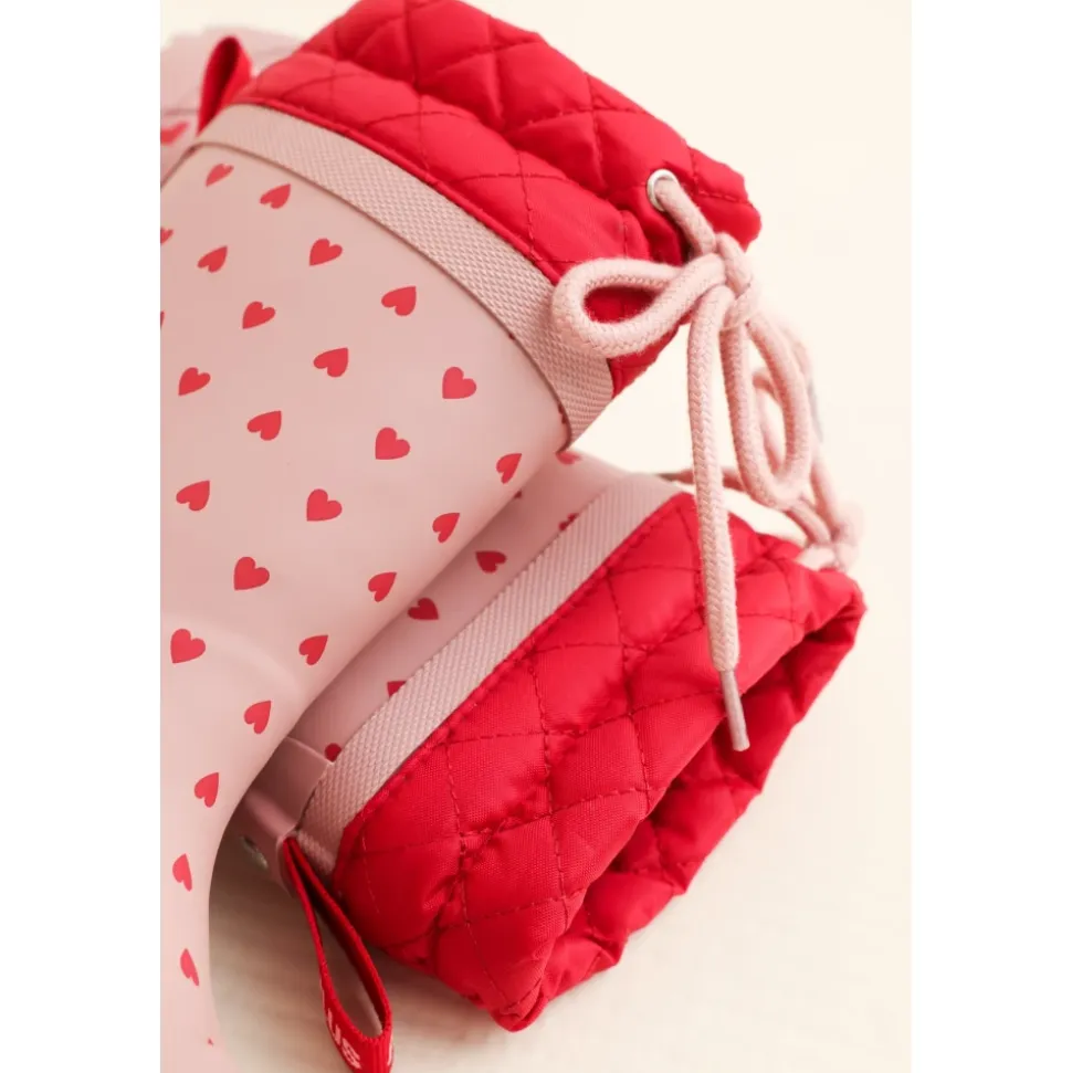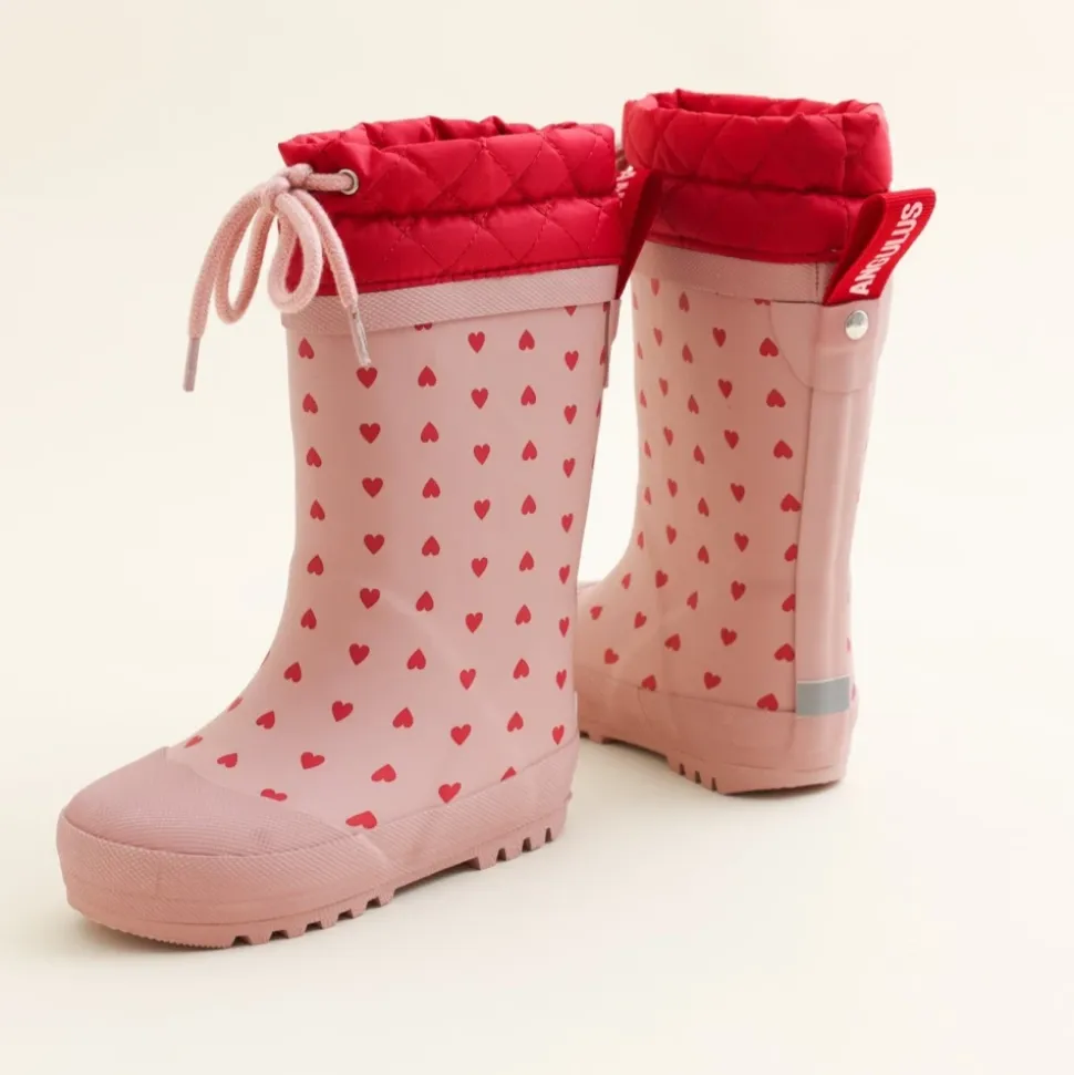 Angulus – Gummistøvle Med Uldfoer, 1012 – Rose Hearts / Red Skønne vinter gummistøvler med uldfoer fra Angulus.Denne i en flot rosa farve med et fint print af små hjerter i rød over det hele, rød tekstil øverst i skaftet med rosa snøre.Vintergummistøvlerne har en fremragende støtte og komfort. De er bløde og fleksible, lavet af vandtæt naturgummi og foret med en blød uldblanding. Støvlen har en sporty logorem bagtil, så den er nem at tage af og på. Den har en udtagelig indersål og ydersålen er en skridsikker gummi track sål. Perfekt til en kold regnfuld dag med munter leg.Støvlerne leveres i en praktisk rygsæk. Vi anbefaler et voksetillæg på ca. 1,2 cm på gummistøvler. Pasform: Læst: Normal pasform Materiale:Materiale: NaturgummiFoer: Uld mixSål: Naturgummi100% vandtæt, 100% naturgummi og 100% PVC fri. Style no.: 1012-001_0049 Indvendige mål:Str. 24: 15,8 cmStr. 25: 16,3 cmStr. 26: 17,1 cmStr. 27: 17,7 cmStr. 28: 18,3 cmStr. 29: 19,1 cmStr. 30: 19,7 cmStr. 31: 20,4 cmStr. 32: 21,2 cmStr. 33: 21,8 cmStr. 34: 22,5 cmStr. 35: 22,9 cmMål er vejledende og kan afvige med 1-2 milimeter.
