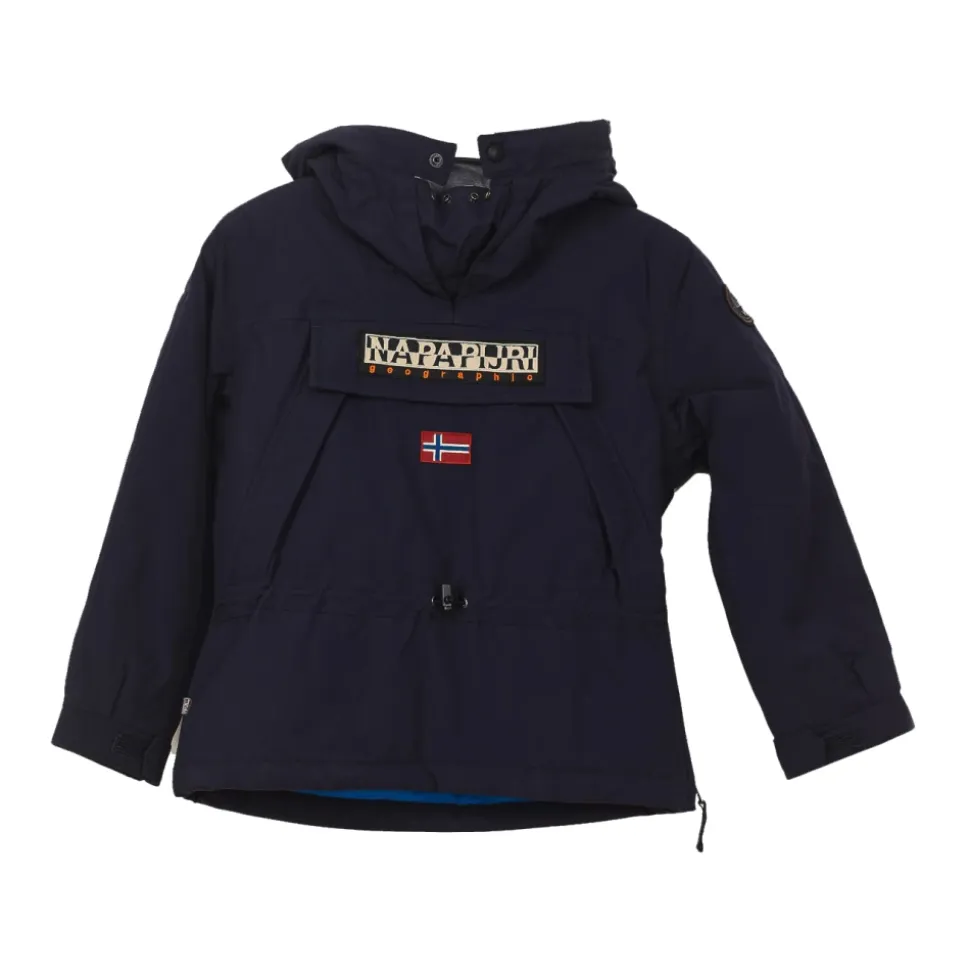 Denne Napapijri vinterjakke til drenge er et behageligt og moderne valg, perfekt til hverdagsbrug, der kombinerer funktionalitet og stil. Jakken har en ribstrikket rund hals med hætte til beskyttelse og en behagelig pasform, justerbar talje, mærkenavn detalje på forsiden for et karakteristisk touch, ribstrikkede manchetter og kant for en perfekt pasform, tonale synlige sømme for forstærket kvalitet og detaljeret design, og en termisk inderforing for ekstra varme. Denne vandtætte jakke er ideel for dem, der søger komfort uden at gå på kompromis med moderne og praktisk stil. Sammensætning: 100% polyester. Plejeinstruktioner: – Maskinvask op til 30°C. – Må ikke stryges. – Tåler tørretumbling. – Må ikke bleges. – Må ikke renses.