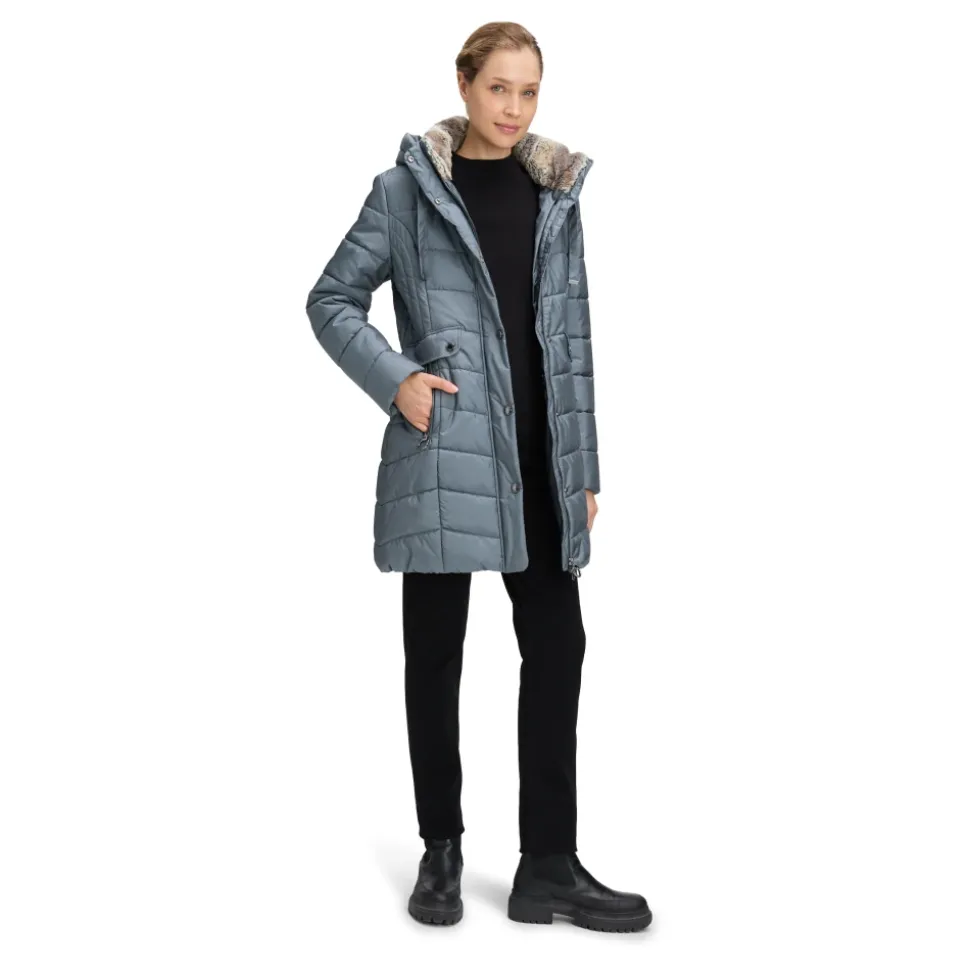 Betty Barclay vinterjakke med et sporty, afslappet design. Den har en justerbar hætte og en stand-up krave for ekstra beskyttelse, hvilket gør den velegnet til hverdagsbrug, fritid og udendørsaktiviteter. Nøgleattributter: Blå | Justerbar hætte | Lynlåslukning | Stand-up krave | Sporty, afslappet design | Ensfarvet design | Dimensioner & pasform: Let figursyet pasform | Feminin silhuet