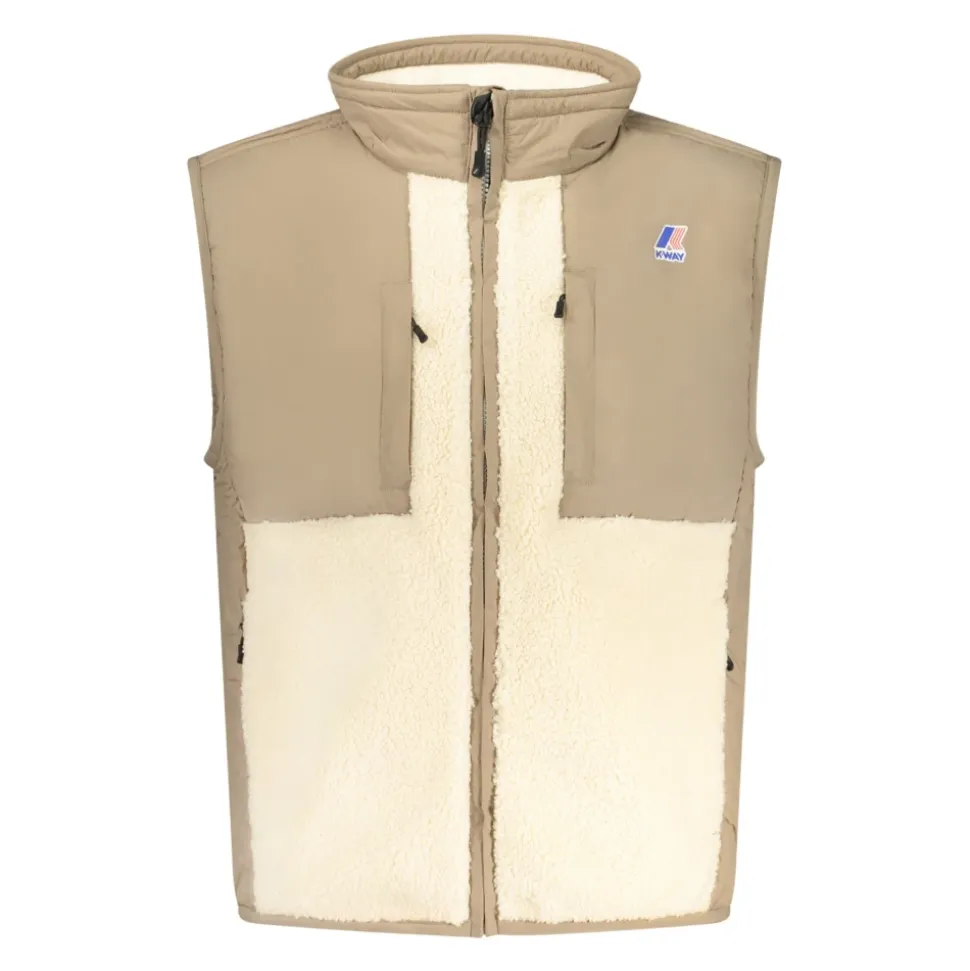 K-Way Vital 4.0 Orsetto Vest kombinerer blød sherpa-tekstur med beskyttende ripstop-paneler for pålidelig varme i midtsæsonen og daglig udendørs brug. Nøgleegenskaber: Beige | Polyester | Vandafvisende ripstop-indsatser | Vindtætte ripstop-indsatser | Åndbare stofindsatser | Medium isolering | Lynlåslukning | 4 udvendige lynlåslommer | Indvendig vindflap | Justerbar snøre i kanten | Ærmeløs | Sherpa-effekt tekstur | Kontrastdetaljer | Trykt logo | Høj krave | Dimensioner og pasform: Regular fit | Sammensætning og pleje: Yderstof (sherpa-effekt): 100% Polyester | Indsatser: 100% Nylon | Vattering (PrimaLoft): 100% Polyester | Maskinvask maks. 30°C mild proces. Må ikke bleges. Må ikke tørretumbles. Må ikke stryges. Må ikke renses. Vaskes separat. Beskyt tilbehør under vask.