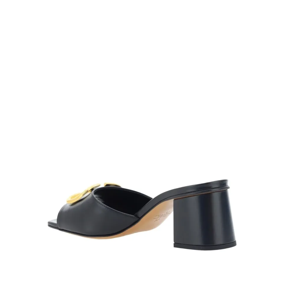 Valentino Garavani Vlogo lædersandaler har det karakteristiske Vlogo-hardware og en 6 cm hæl for en raffineret, hverdags heeled mule. De balancerer skulpturelt design med let slip-on brug for et poleret look. Nøgleattributter: Sort | Kalveskind | Slip-on design | Brandet indersål | Firkantet tå | Guldfarvet hardware | Hælet mule silhuet | Dimensioner & pasform: Hæl 6 cm | Sammensætning & pleje: 100% kalveskind | Indvendig: Læder | Indersål: Læder | Sål: Læder
