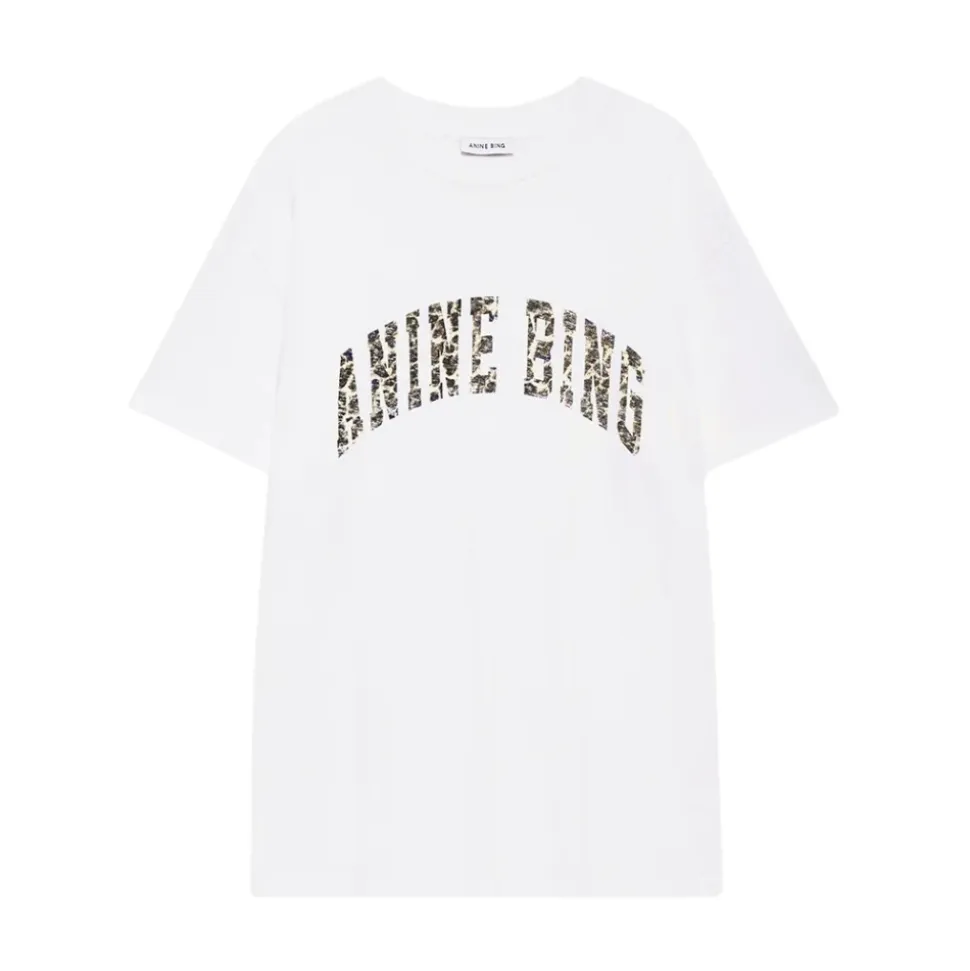 Anine Bing Walker Tee er en klassisk hvid T-shirt med et moderne twist, der har et buet leopardprint-logo på brystet for en subtil kant. Den afslappede silhuet og bløde bomuld gør den ideel til hverdagsbrug. Vigtige egenskaber: Hvid | Off White | Ivory Leopard | Bomuld | Åndbar | Blød fornemmelse | Rund halsudskæring | Korte ærmer | Buet leopardprint-logo på brystet | Dimensioner & pasform: Afslappet pasform | Modellen bruger størrelse S; højde 176 cm | Sammensætning & pleje: 100% bomuld | Maskinvask kold med lignende farver. Må ikke bleges. Tørretumbles ved lav varme eller hænges til tørre. Stryg ved lav varme, hvis det er nødvendigt.