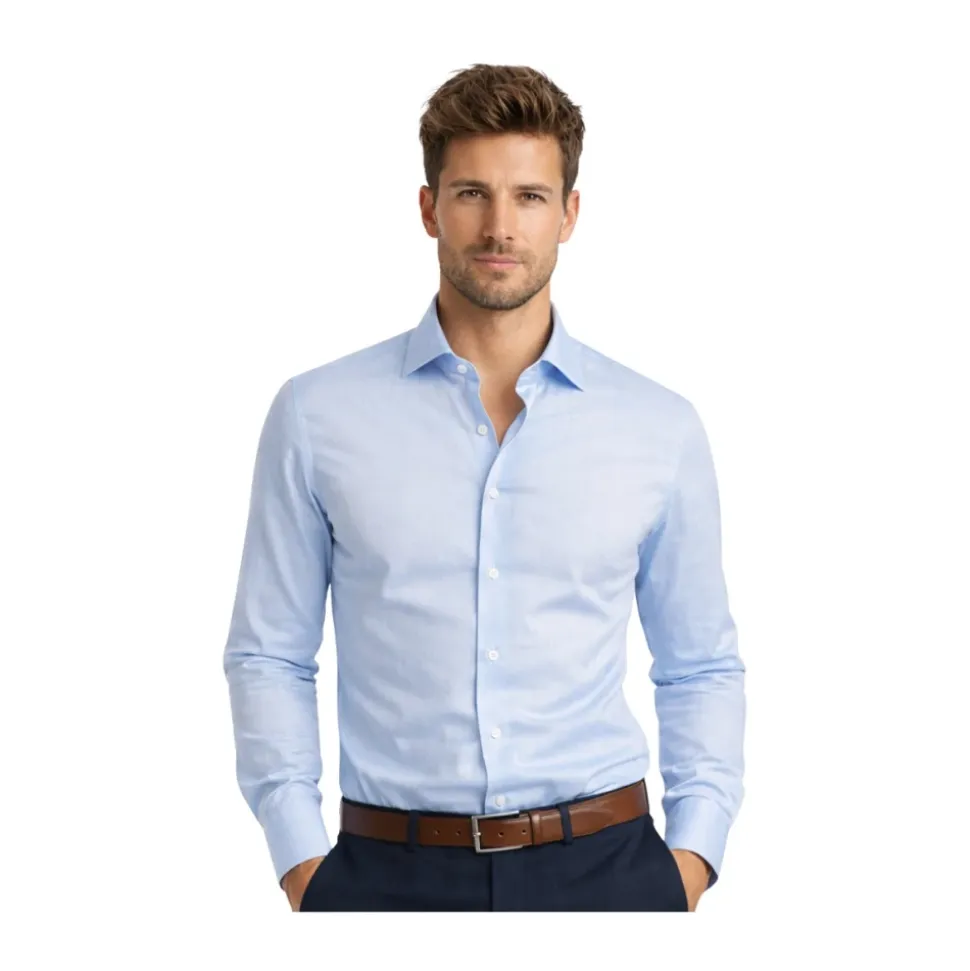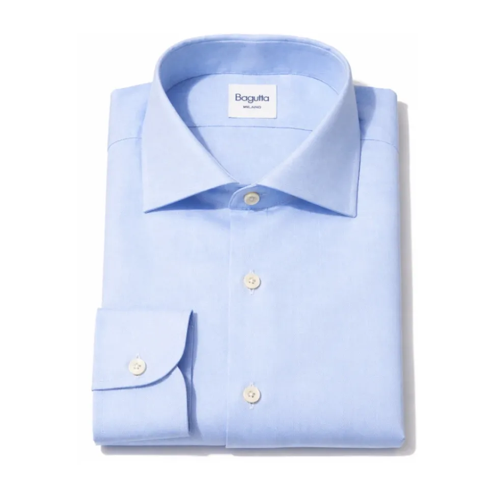 Bagutta Walter Slim-fit Skjorte er en lyseblå Oxford-vævet bomuldsskjorte med en fransk krave og perlemorsknapper. Den er skræddersyet til formel brug og kontorbrug. Vigtige egenskaber: Blå | Azzurro | Bomuld | Åndbart stof | Knaplukning foran | Oxford vævning | Fransk krave | Lange ærmer | Perlemorsknapper | Mål og pasform: Slim fit | Sammensætning og pleje: 100% bomuld | Maskinvask eller rens. Må ikke bleges. Må ikke tørretumbles.