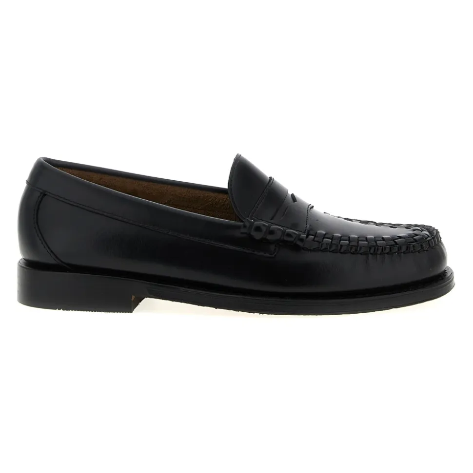 G.H. Bass & Co. Weejuns Larson Weave Loafer i poleret moc-læder, med vævede detaljer hen over overdelen for et raffineret, smart-casual look, der er velegnet til hverdagsbrug og mere formelle lejligheder. Vigtigste egenskaber: Sort | Læder | Slidstærk gummisål | Polstret læderindersål | Lædersål | Vævet overfladedetalje | Poleret moc-tå | Sammensætning & pleje: Læder (overdel, indersål, sål) | Gummi (sål)