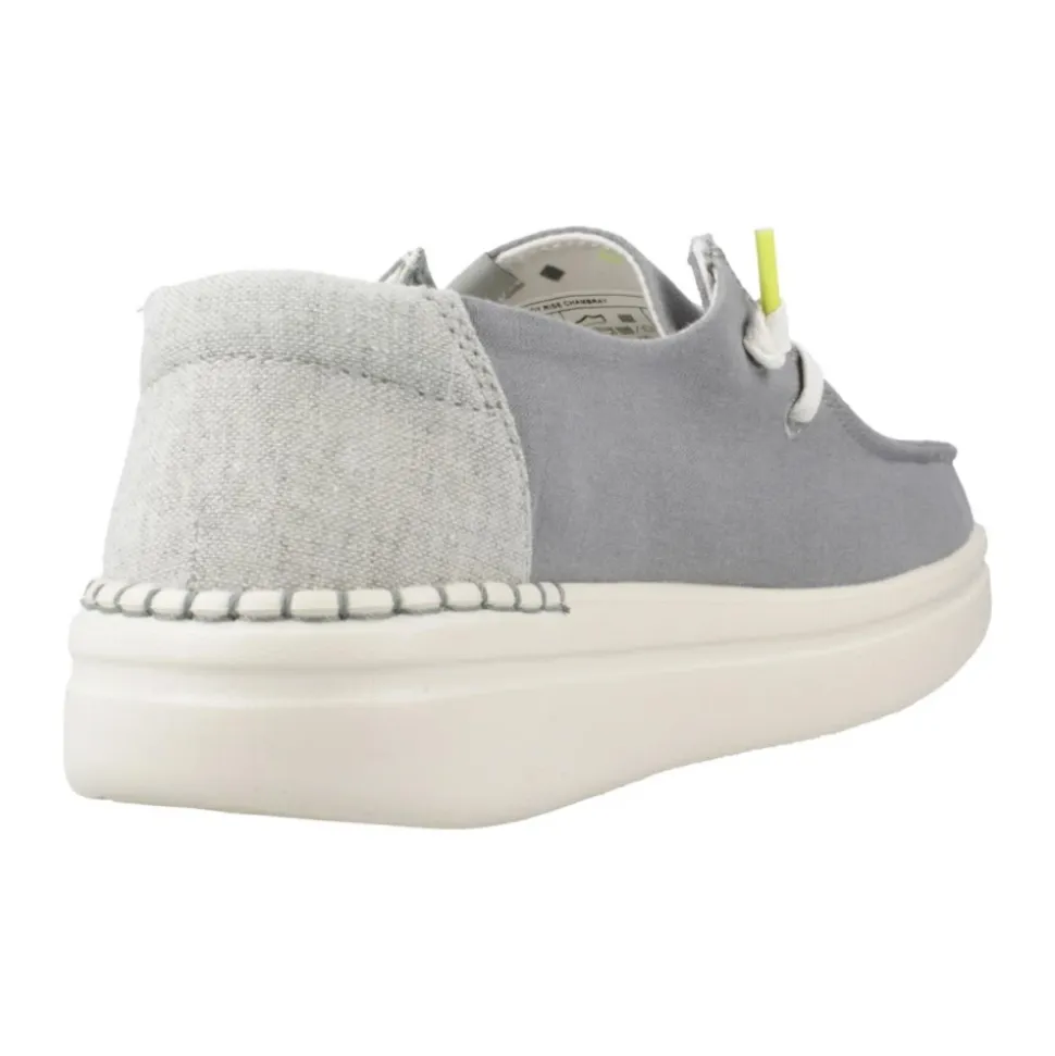 Hey Dude Wendy Rise er en forhøjet loafer i mokkasinstil, der kombinerer en let, åndbar tekstiloverdel med en polstret EVA-skumsål for komfort i hverdagen og nem brug. Nøgleattributter: Grå | Grøn | Tekstil | Let | Åndbar | Skridsikker sål | Nem at vaske | Udtagelig skumindersål | Easy-on system | Klar til rejser | Moc-toe silhuet | Platform (rise) ydersål | Vævede snørebånd | Dimensioner og pasform: Afslappet pasform | Sammensætning og pleje: Tekstiloverdel | EVA-skumsål | Udtagelig skumindersål | Nem at vaske.