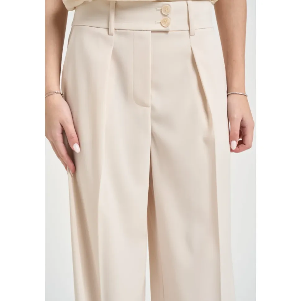 Patrizia Pepe Wide Trousers i en højtaljet palazzo-silhuet, defineret af frontlæg for et flydende, elegant fald. Ideel til raffinerede dags- eller aftenlooks. Vigtigste egenskaber: Beige | Elfenben | Polyester | Glat overflade | Blødt, flydende fald | Lynlås foran med dobbelt tone-i-tone knaplukning | Bæltestropper | Paspolerede baglommer | Høj talje | Bredt palazzo-ben | Frontlæg (pinces) der fremhæver silhuetten | Essentielt, minimalistisk design | Mål & pasform: Høj talje | Bred pasform (palazzo) | Sammensætning & pleje: 100% polyester | Håndvask eller rens.