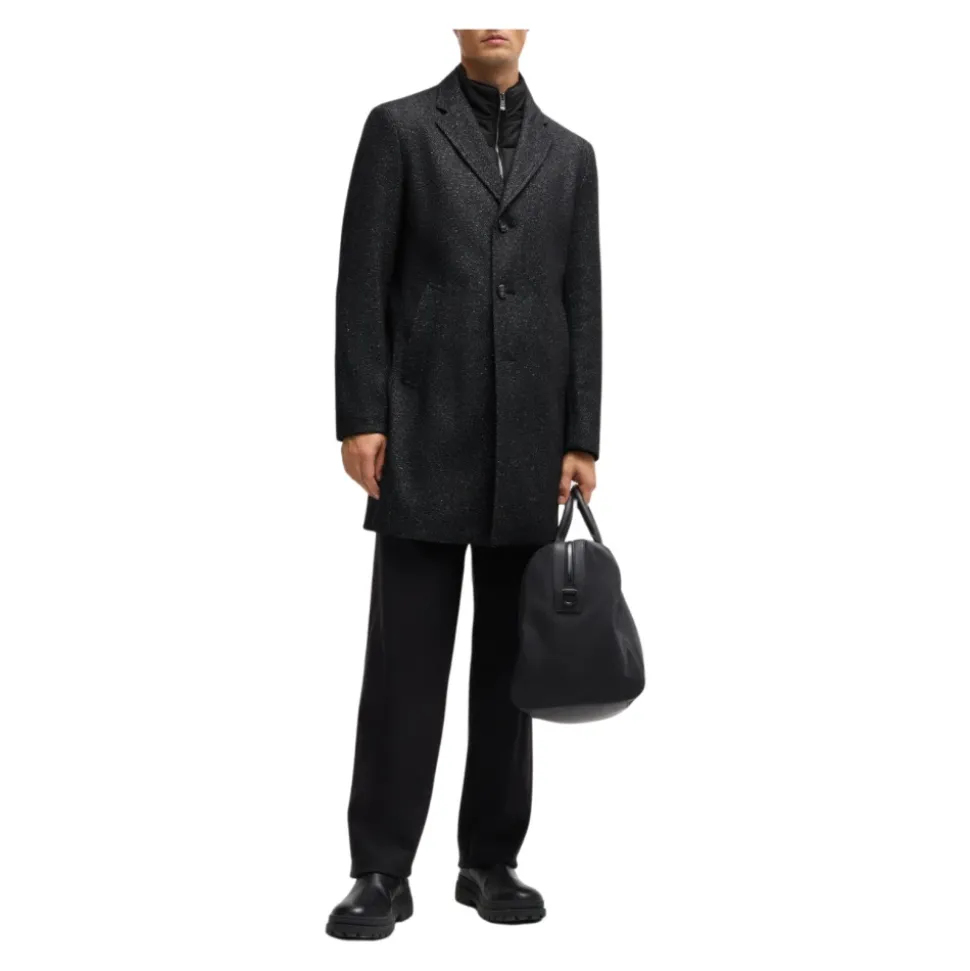 Løft din stil med denne enkeltknappede frakke fra Boss, skabt til både elegance og varme. Perfekt til koldt vejr, kombinerer denne frakke funktionalitet med et slankt design. Produkt detaljer: Sort | Uld | Viskose | Polyester | Polyamid | Akryl | Enkeltknappet | Sammensætning og pleje: Uld | Viskose | Polyester | Polyamid | Akryl