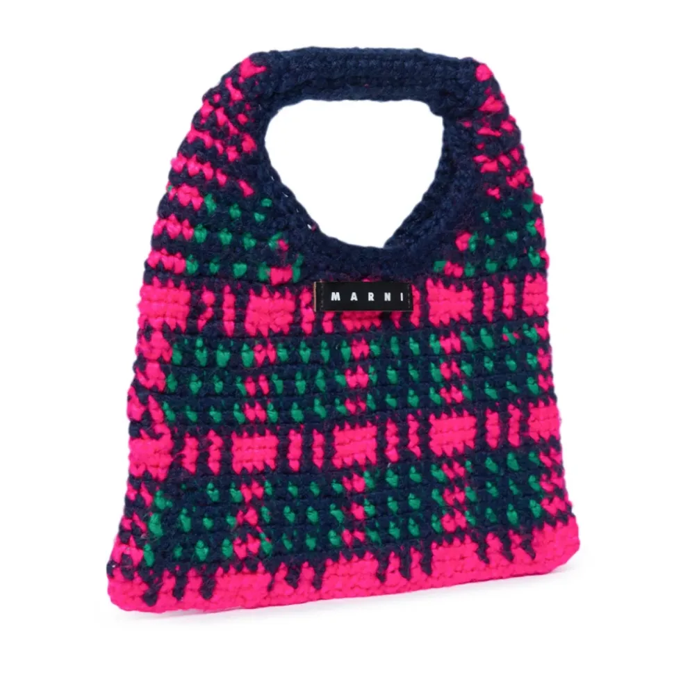 Marni Wooly Crochet Check Tasken er et stilfuldt håndholdt tilbehør med et unikt hæklet ternet design og et institutionelt logo-mærke, perfekt til særlige lejligheder. Produkt detaljer: Fuxia | Multicolor | Akryl | Hæklet ternet konstruktion | Håndholdt design | Institutionelt logo-mærke | Dimensioner og pasform: 15 cm højde | 25 cm total højde | 25 cm bredde | Hankefald: 7 cm | Sammensætning og pleje: 100% Akryl | Applikation: 100% Koskindslæder