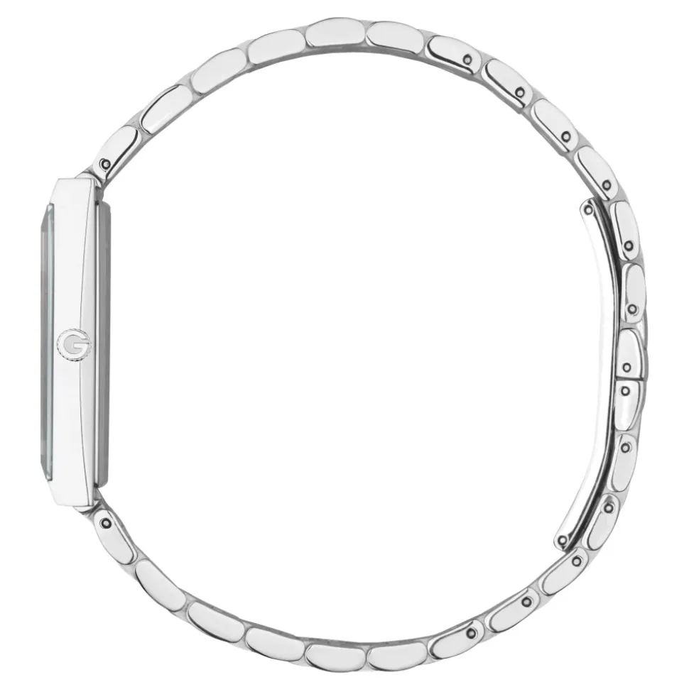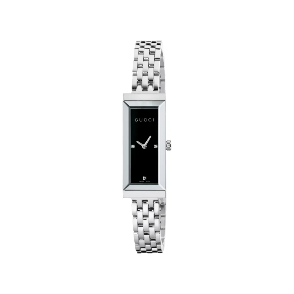 Forkæl dig selv med dette smukke Gucci-ur til kvinder. Med en sort urskive med 3 diamanter, rustfrit stålkasse og armbånd, samt safirglas, er dette ur både elegant og holdbart. Vandafvisende op til 50 meter.