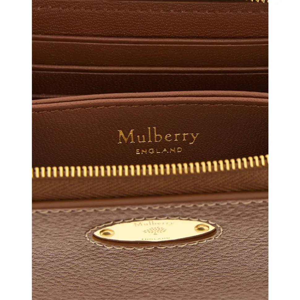 Mulberry Zip-Around Hammered Leather Wallet er en kompakt, tekstureret pung designet til organiseret hverdagsbrug. Den har en sikker lynlåslukning hele vejen rundt og et frontmetal logo for en poleret finish. Nøgleattributter: Brun | Læder | Lynlåslukning hele vejen rundt | Hammered lædertekstur | Frontmetal logo | Mål og pasform: B 11 x H 8,5 x D 2 cm | Sammensætning og pleje: 100% okselæder
