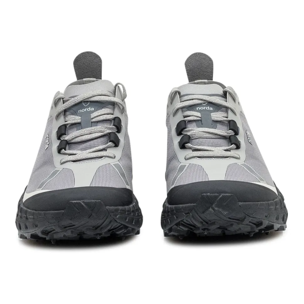 NORDA 001A Sneaker er en letvægts, performance-fokuseret trailsko designet til langdistancekomfort og højt-ydende greb. Den kombinerer en sømløs teknisk overdel med en Arnitel-mellemsål for spændstig stødabsorbering på varieret terræn. Nøgleattributter: Grå | Pewter | Dyneema | Vibram Megagrip-ydersål med højt greb | Responsiv Arnitel TPEE-mellemsål | Tilpasset eTPU-indersål for energiudnyttelse | Slidstærk sømløs overdel | Lavt 5,0 mm drop for stabil løbetur | norda Lock System kileformet sok for sikker pasform | 360° refleksdetaljer | Diamantmønstrede snørebånd | Sømløs vævet overdel | Sorte kontrastdetaljer | 5 mm knopmønster | Dimensioner & pasform: Vægt: Herre US 8,5 ≈ 268 g; Dame US 8 ≈ 232 g. | Hæl: 26 mm; Forfod: 21 mm; Drop: 5,0 mm. | Ydersål: 5 mm knopper. | Lille i størrelsen – tag en halv størrelse op (US). | Reference størrelse: US. | Sammensætning & pleje: Sømløs Dyneema-overdel | Arnitel TPEE-mellemsål | Tilpasset eTPU-indersål | Vibram Megagrip-ydersål | Dyneema/polyester snørebånd