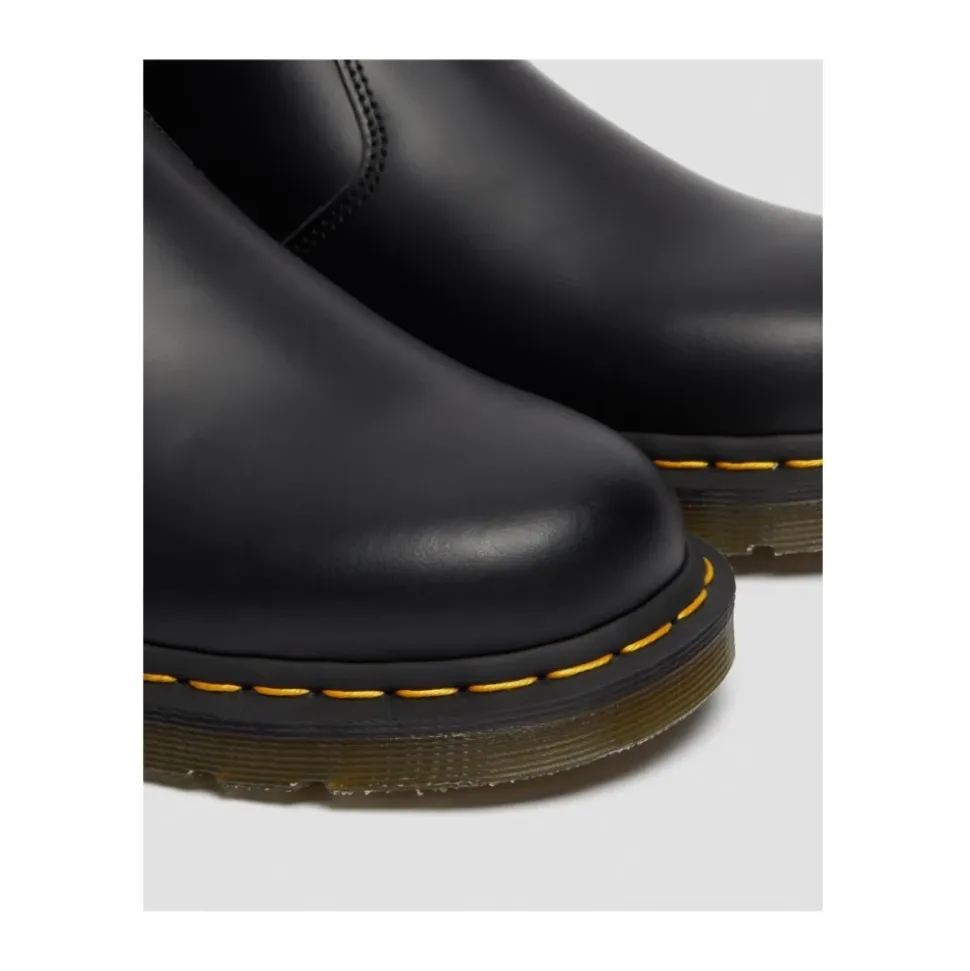 Giv dit skogarderobe et boost med disse Dr. Martens 2976 Chelsea Boots i sort glat læder. Med gule welt-sømme, en AirWair hælløkke og en robust, luftpolstret sål er disse støvler både stilfulde og komfortable. Elastikindsatsen sikrer en perfekt pasform, mens læderet kan poleres til en skinnende overflade eller slides op for et mere råt look. Sålen og overdelen er varmesvejset og syet sammen for øget holdbarhed. Størrelsen passer perfekt til enhver modebevidst kvinde. Produktstil-ID: 22227001. Materiale: Læder.