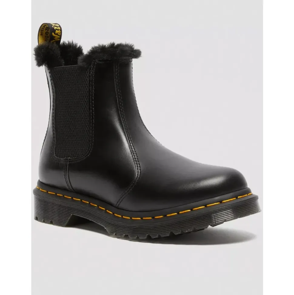 Dr. Martens 2976 Leonore er en robust Chelsea-støvle, der er bygget til koldt vejr. Den kombinerer Atlas-læder med et faux-fur-for for varme og en slidstærk Goodyear-welted konstruktion. Nøgleattributter: Mørkegrå | Atlas | Atlas-læder | Isoleret faux-fur (WarmWair) for for varme | Slidstærk Goodyear-welted konstruktion | Robust commando BEN-sål | Elastiske sidepaneler for nem på- og aftagning | Hælstrop | Slip-on Chelsea-design | Chelsea-støvlesilhuet | Gule welt-syninger | Vokset Atlas-læder med subtil pull-up og satin-glans | Dimensioner og pasform: Normal i størrelsen | Standard læst – egnet til gennemsnitlige til brede bredder | Sammensætning og pleje: Overdel: 70% Læder, 30% Elastan | Indvendigt: 90% Faux fur, 10% Tekstil | Sål: 100% PVC | Aftørres med en fugtig klud. Påfør Dr. Martens Wonder Balsam på læderet og polér med en skobørste for at bevare finishen.