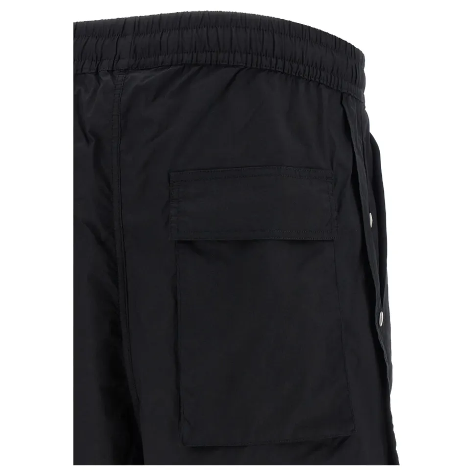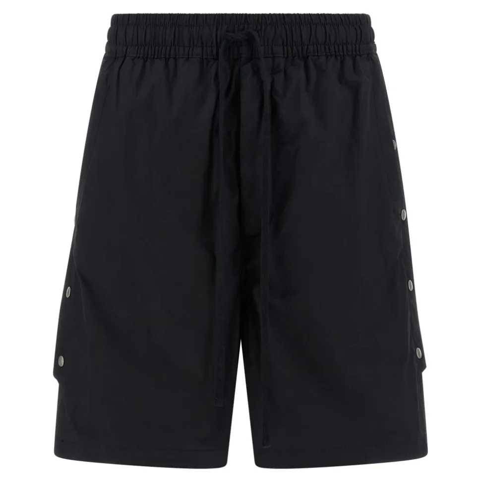 Thom Krom 33 Bermuda Shorts er bermudashorts med brede ben designet til en afslappet silhuet med lav skridtlængde og justerbare sideslidser for alsidig styling. Vigtigste egenskaber: Sort | Bomuld | Let stretch | Elastisk linning med snøre | Knapflap | Lommer | Sideslidser med trykknapper til at ændre benbredden | Lav skridtlængde | Brede ben | Bermuda længde | Sideslidser med trykknapper | Dimensioner og pasform: Normal pasform