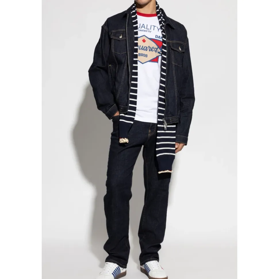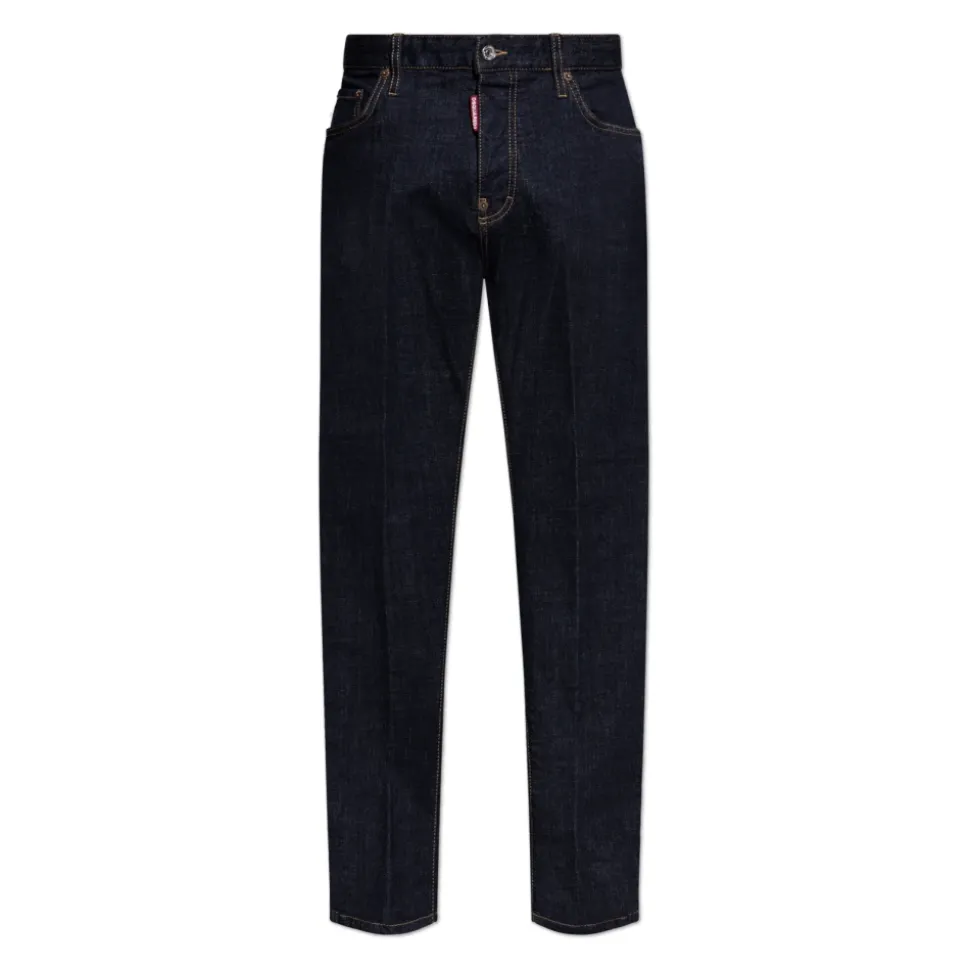 Dsquared2 642 Jeans præsenterer en raffineret marineblå denim mulighed med en lige, almindelig pasform og subtile kontrast syninger for et poleret afslappet look. Nøgleattributter: Blå | Marineblå | Denim | Stretch | Holdbart stof | Fem-lomme design | Bæltestropper | Lige ben | Kontrasterende gul-orange stikninger | Rød DSQUARED2 label ved gylpen | Udtalt stoftekstur | Dimensioner & pasform: Modelhøjde: 185 cm | Bryst: 92 cm | Talje: 74 cm | Hofter: 91 cm | Modellen er iført størrelse: 50 | Almindelig pasform | Lige ben