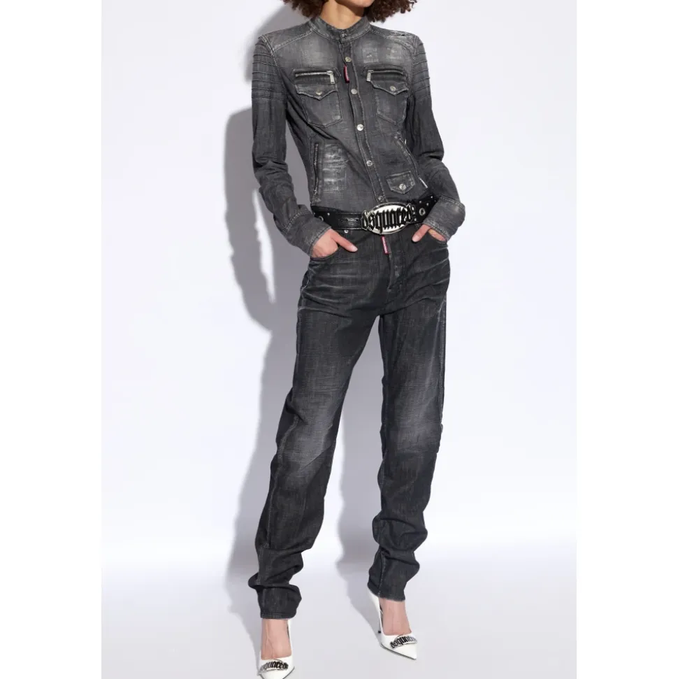 Opdag de elegante og stilfulde 642 Jeans fra Dsquared2, der har et moderne, tilspidset ben design og klassisk fem-lomme styling. Perfekte til et moderne look, disse jeans er en alsidig tilføjelse til enhver garderobe. Produkt detaljer: Sort | Grå | Knaplukning | Klassiske fem lommer | Logo label syet på fronten | Tilspidsede ben | Dimensioner og pasform: Tilspidset pasform |