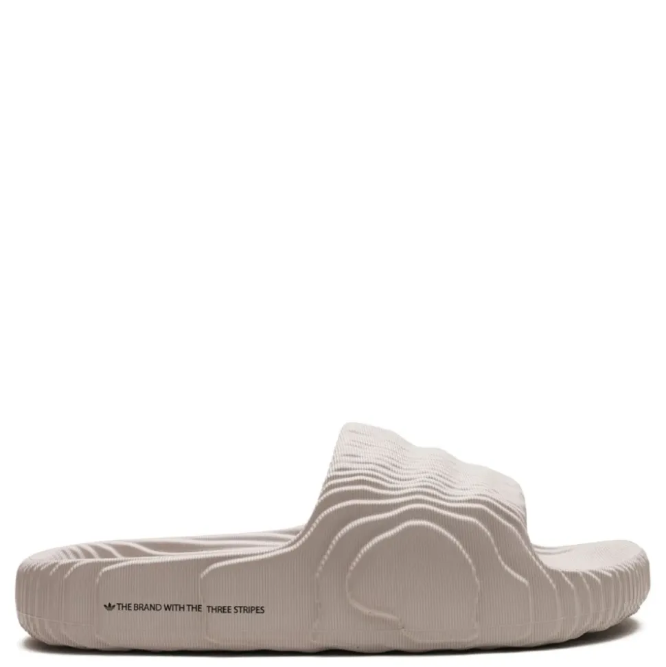 adidas Adilette 22 Slides opdaterer den klassiske slide med en topografi-inspireret bølget overdel og en formstøbt EVA-fodseng, der er bygget til komfortabel hverdagsbrug. Nøgleattributter: Lys brun | Core black | EVA | Multi-overfladegreb | Stødabsorbering | Komfortabel stødabsorbering til brug hele dagen | Fungerer i våde og tørre forhold | Slip-on design | Bred rem i båndstil | Formstøbt fodseng | Topografisk kortinspireret bølget tekstur | Tyk sål med rillet ydersål og cirkulære fordybninger | Subtil Trefoil-branding på mellemsål | Dimensioner og pasform: Almindelig pasform | Normal i størrelsen – bestil din sædvanlige størrelse | Sammensætning og pleje: EVA (25 % plantebaseret indhold fra sukkerrør) | Andre syntetiske materialer (overdel, foring, ydersål) | Tørres af med en fugtig klud.