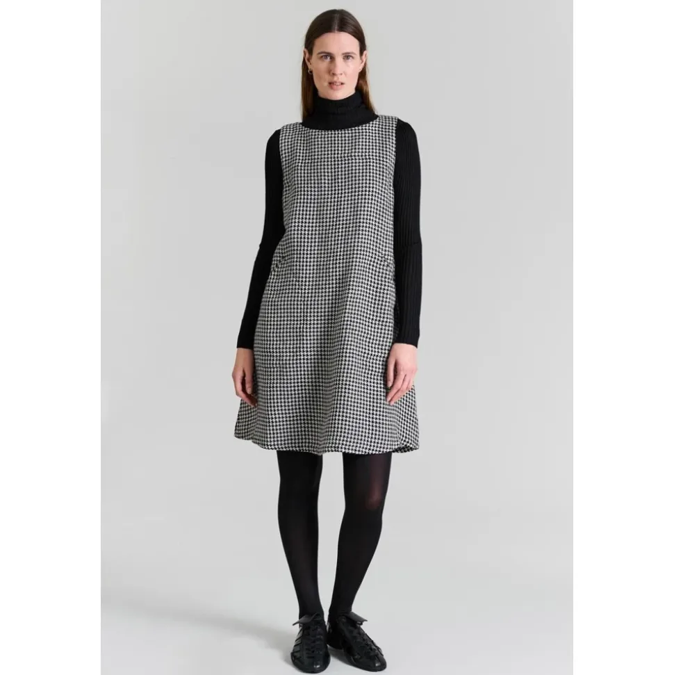 Smuk pepita-ternet kjole i en lækker blød hørkvalitet. Kjolen har et enkelt snit, perfekt til at bære med bare arme eller lag-på-lag med en skjorte eller en tætsiddende rullekrave. Bemærk: Fjernlager. Levering kan forlænges med 2-3 dage, hvis varen ikke er i vores butik lige nu.