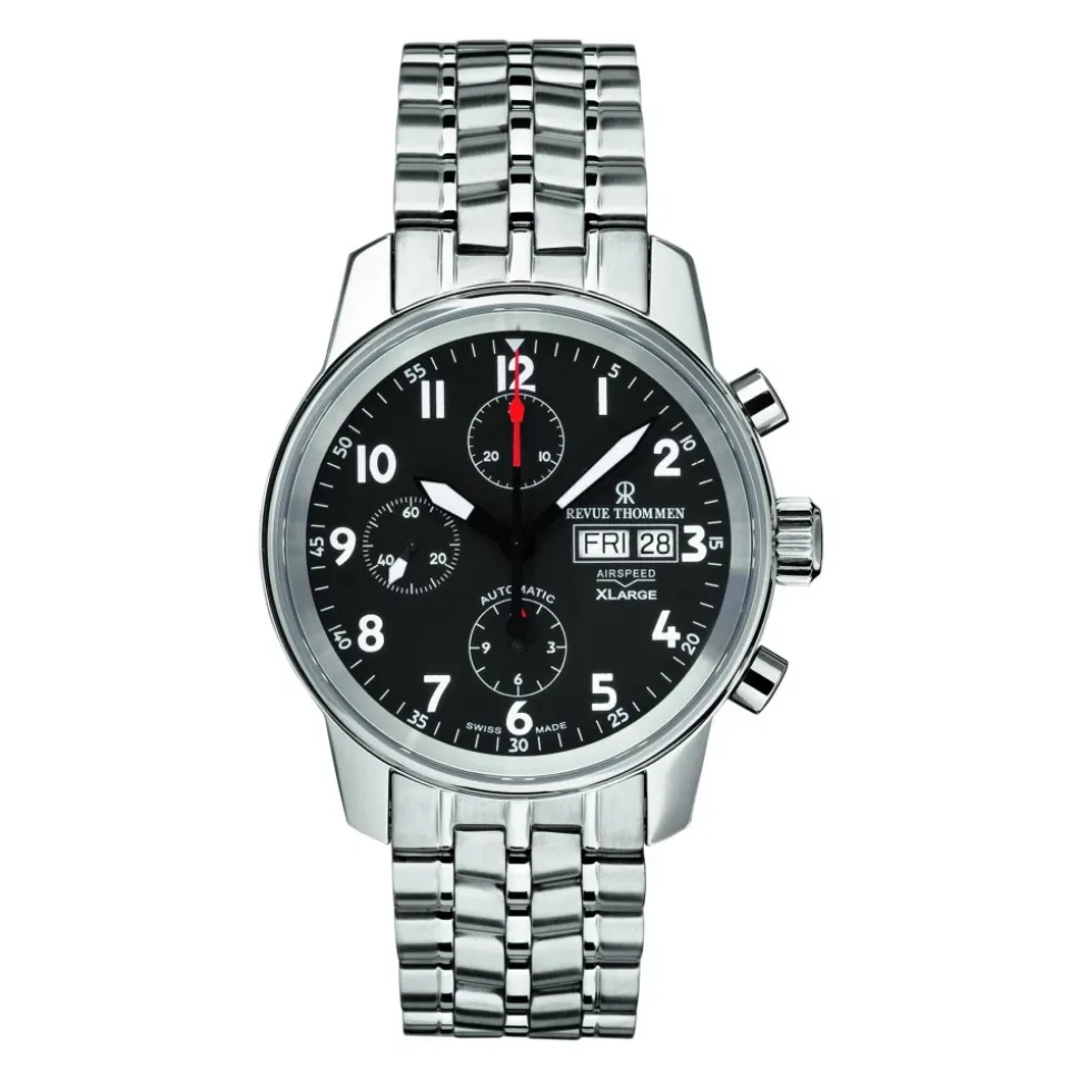 Oplev Revue Thommen Airspeed Xlarge Day & Date Watch, et sofistikeret ur med et Valjoux 7750 urværk og et elegant design i rustfrit stål. Perfekt til dem, der sætter pris på præcision og stil. Produkt detaljer: Grå | Rustfrit stål | Vandtæthed 5 ATM | Dag & Dato vindue | Sort urskive | 40mm sølvfarvet urkasse | Sammensætning og pleje: Aftør med en blød klud.