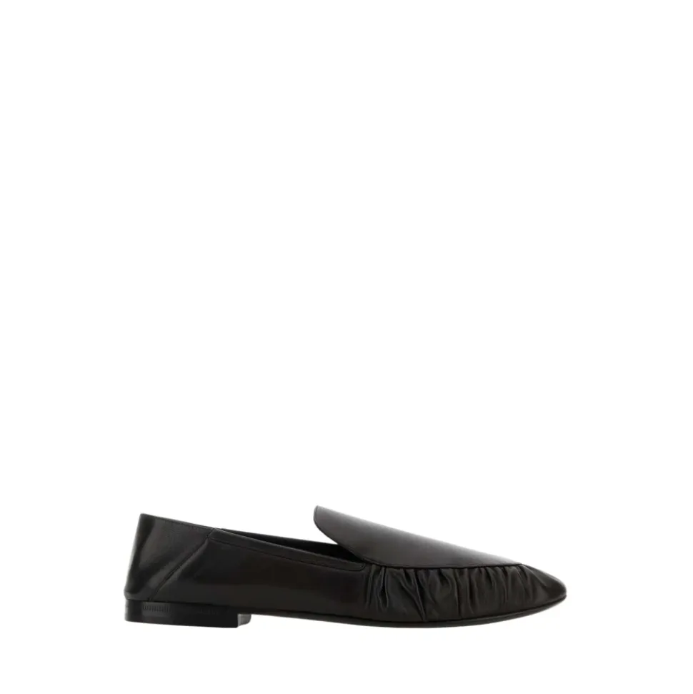 Saint Laurent Alain Ruched Læder Loafers med Spids Tå kombinerer en elegant, spids tå med en rynket vrist for en raffineret, moderne loafer. Designet til ubesværet slip-on brug, de passer til både afslappede og mere formelle outfits. Nøgleattributter: Sort | Læder | Komfortabel pasform | Heldagskomfort | Slip-on design | Rynket vrist | Spids tå | Elegant silhuet | Sammensætning & pleje: Ydre: 100% Læder | Foring: 100% Læder | Sål: 100% Læder