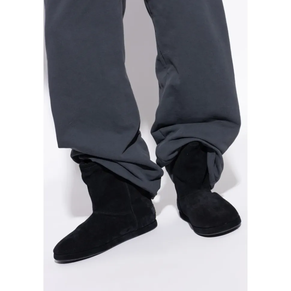 Balenciagas Alaska Snow Boots kombinerer en minimalistisk silhuet over anklen med isoleret konstruktion for pålidelig vintervarme og trækkraft. Designet lægger vægt på rene linjer, en rund tå og et diskret logo på hælen for underspillet luksus. Vigtige egenskaber: Sort | Læder | Termisk isolering | Skridsikker gummisål | Holdbar sål tilpasset vinterforhold | Isoleret interiør for termisk komfort | Robust gummisål for stabilitet på vinteroverflader | Minimalistisk silhuet | Over ankelhøjde | Rund tå | Lige overdel uden pynt | Diskret rektangulært logo på hælen | Mat ruskind/velour tekstur | Mål og pasform: Sålhøjde: 2 cm | Sålhøjde på højeste punkt: 3 cm | Sammensætning og pleje: Læder (ruskind) | Faux shearling / fleeceforing | Gummisål
