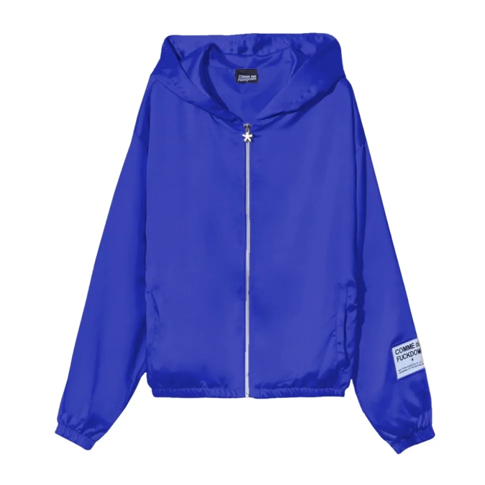 COMME des FKDOWN All-Zipper Satinjakke med Hætte kombinerer en elegant satinfinish med en praktisk hætte og fuld lynlåslukning, designet til afslappet lagdeling og streetwear. Vigtige egenskaber: Blå | Polyester | Fuld lynlåslukning | Hætte | To sidelommer | Satinfinish | Logoetiket på ærmet | Sammensætning & pleje: 100% Polyester