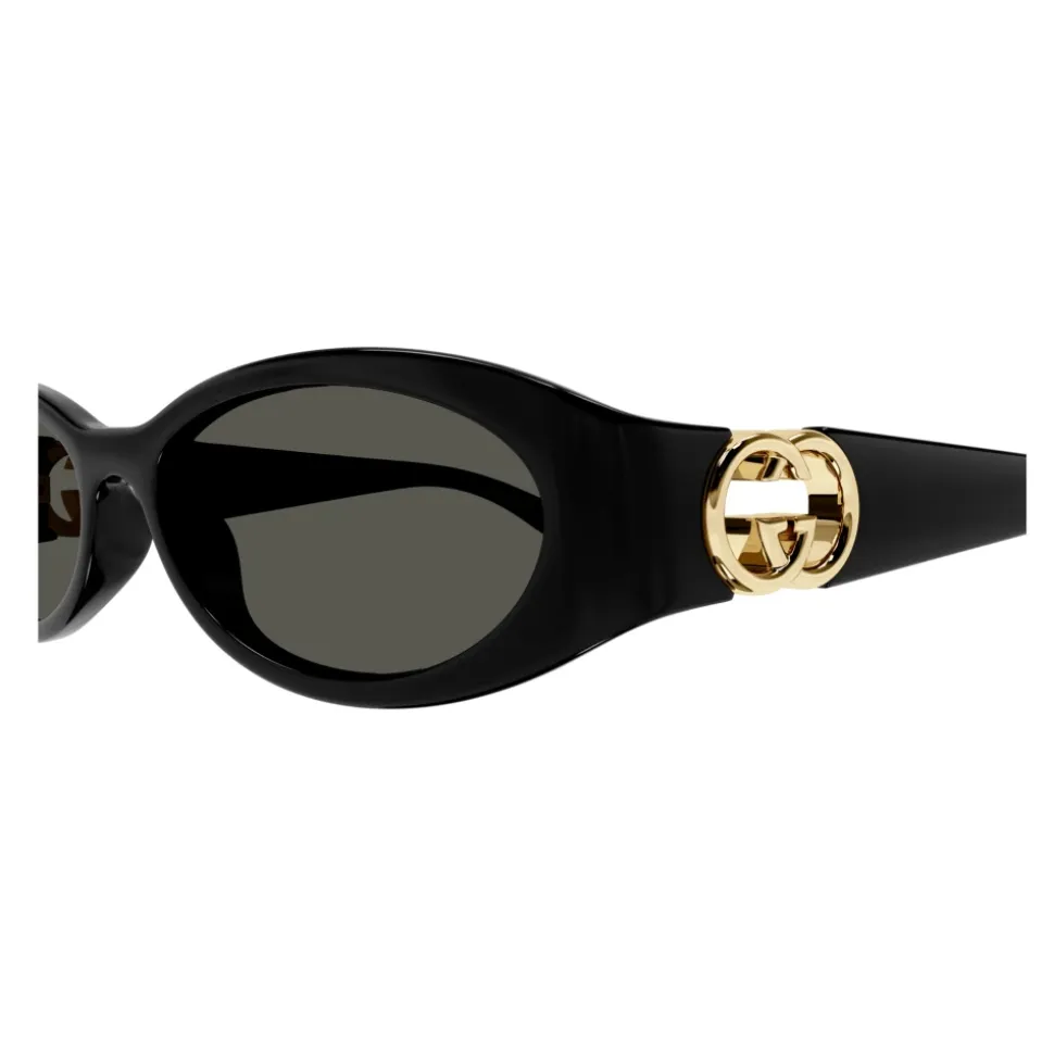 Gucci Almond Solbriller kombinerer en vintage-inspireret mandelformet silhuet med brandets signatur GG-detaljer. De leverer hverdags raffinement med pålidelig solbeskyttelse og en kompakt, bærbar form. Nøgleattributter: Sort | Acetat | 100% UVA/UVB beskyttelse | Grå ensfarvede glas | Ikke-polariserede glas | Inkluderer originalt etui | Renseklud inkluderet | Ægthedsbevis inkluderet | Producentgaranti inkluderet | Sprøjtestøbt rammekonstruktion | Mandelformet/afrundet silhuet | Sammenflettet GG-udskåret logo på stængerne | Funktionelt GG-logo på hængslet | Vintage-inspireret design | Mål og pasform: Glasbredde: 54 mm | Bro: 16 mm | Stang: 135 mm | Sammensætning og pleje: Acetat | Rens glassene med den medfølgende renseklud og opbevar solbrillerne i det originale etui.