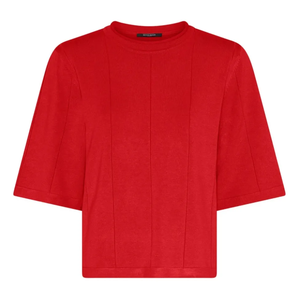Bruuns Bazaars AnemoneBBGliandra Knit er en kortærmet sweater med rund hals, der kombinerer minimalistisk styling med en diskret brandet kantdetalje. Style den med højtaljede bukser og loafers til kontoret eller med en nederdel og smykker til aftenbrug. Vigtige egenskaber: Rød | Ægte rød | Rund halsudskæring | Korte ærmer | Subtil Bruuns Bazaar kantdetalje | Dimensioner og pasform: Almindelig pasform
