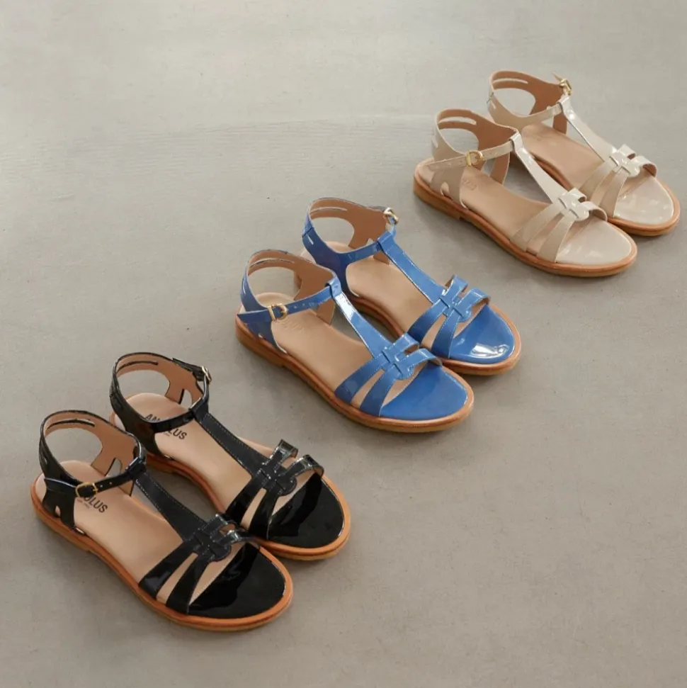Angulus – Sandal med stropper og ankelrem, 5415 – Coral PT. Feminin sandal i lak (skind) med stropper og ankelrem fra Angulus. Designet i Danmark og håndlavet med kærlighed i Portugal.