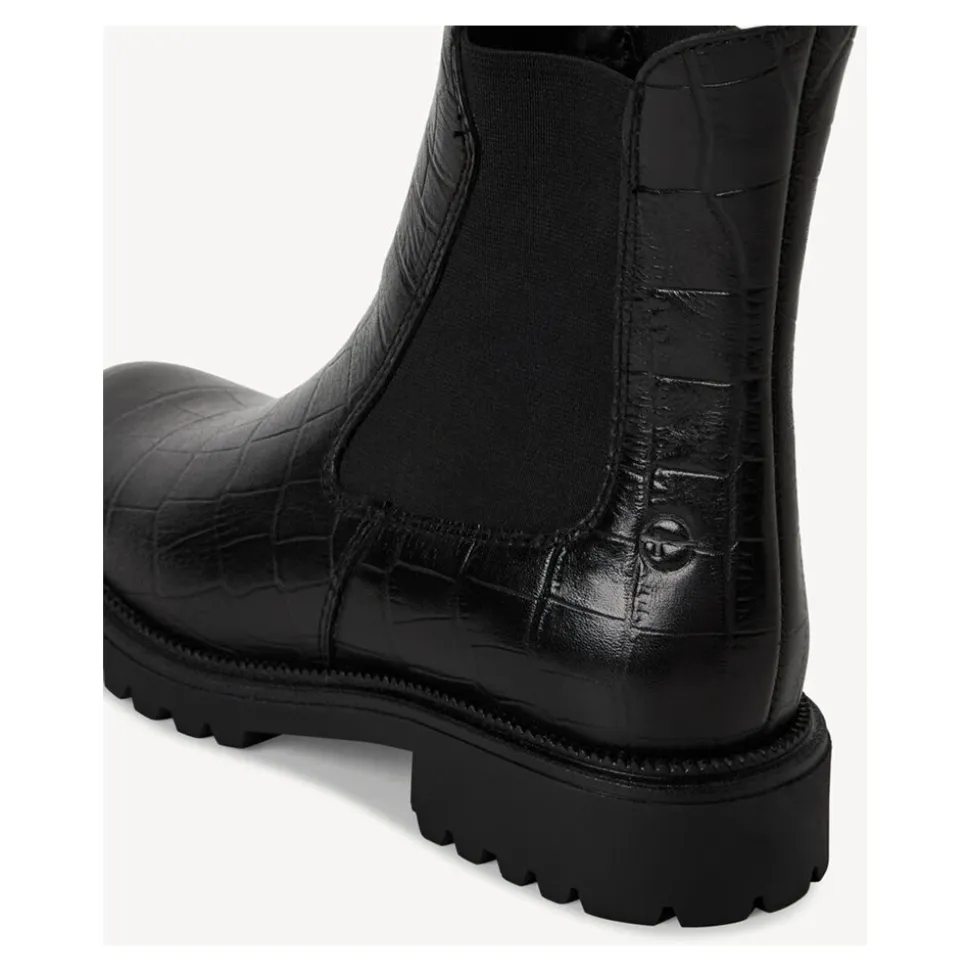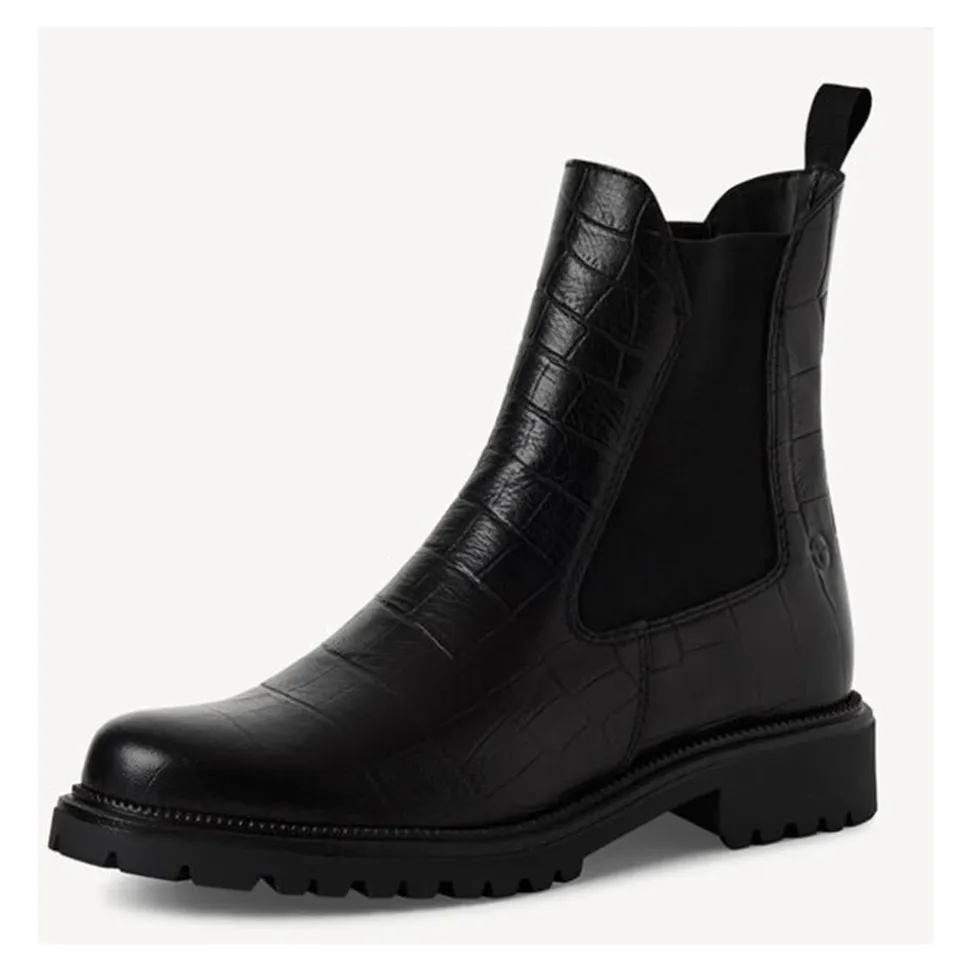 Tamaris ankelstøvler kombinerer en komfortfokuseret Touchit-fodseng med elastiske sidepaneler for nem på- og aftagning. Designet med en blokhæl og rund snude, passer de til hverdagsbrug i byen og afslappede, smarte looks. Vigtigste egenskaber: Sort | Læder | Touchit-komfortfodseng | Elastiske sidepaneler for nem på- og aftagning | Ikke-aftagelig indersål | Rund snude | 30 mm blokhæl | Ankelhøj skaft | Blød ruskindsoverdel | Dimensioner & pasform: Skafthøjde: 16 cm | Hælhøjde: 30 mm | Platformhøjde: 10 mm | Sammensætning & pleje: Ydermateriale: Læder | Overdel: Ruskind | Indermateriale: Tekstil | Indersål: Tekstil | Sål: Syntetisk