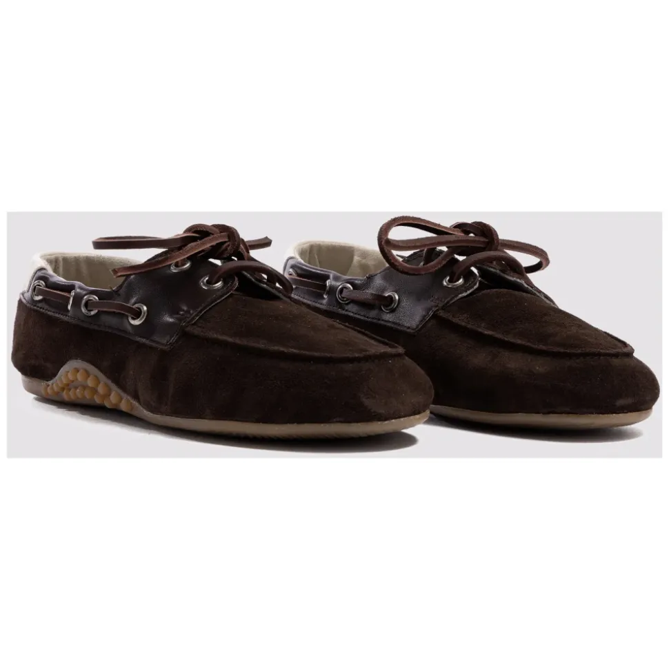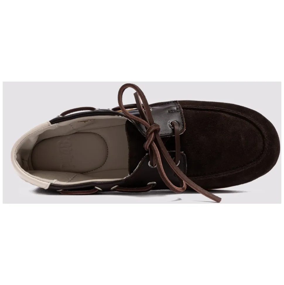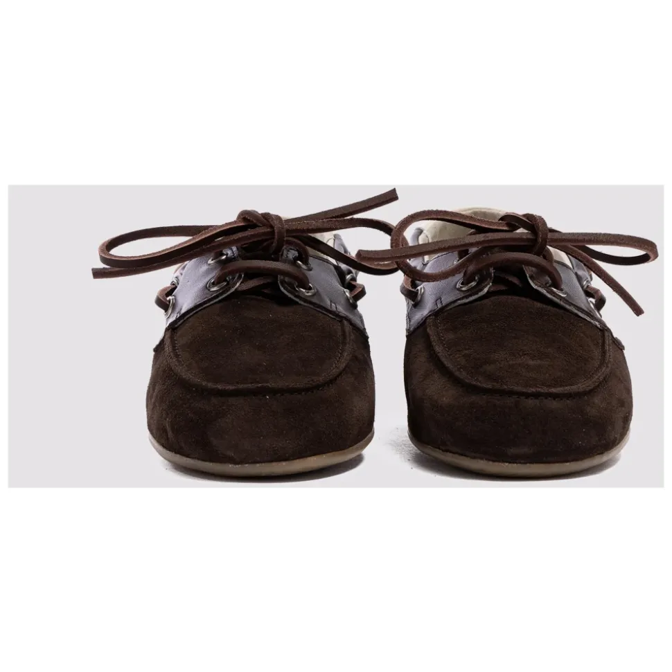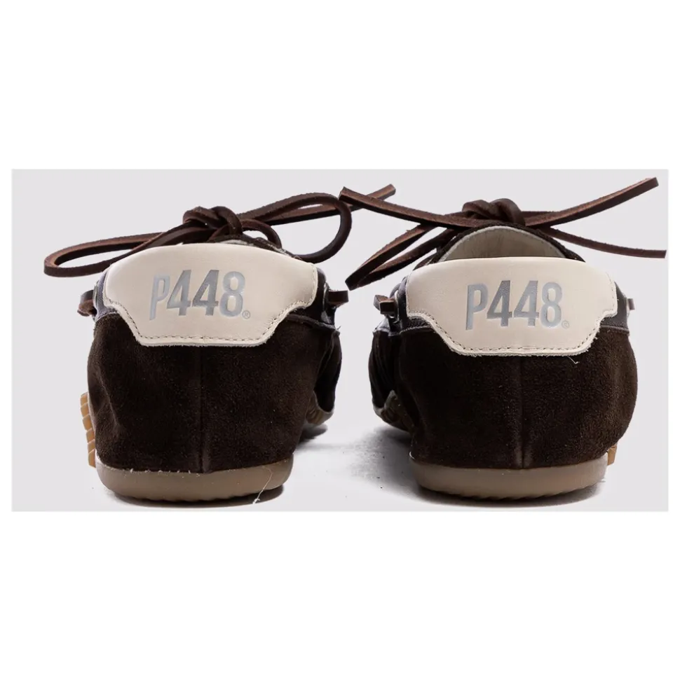 P448 Antibes kombinerer sacchetto-konstruktion med en bådsko-silhuet for at levere en håndlavet, komfortabel sko med en ren, hverdagsagtig stil. Nøgleattributter: Brun | Ruskind | Hævet gummisål for forbedret trækkraft | Håndlavet sacchetto-konstruktion for en blød pasform | Snøredetalje med vævede ruskindssnørebånd | Bådsko-silhuet | Brune læderdetaljer | Off-white læderhælstrop | Ruskindssnørebånd vævet rundt om overdelen | Dimensioner & pasform: Sacchetto-konstruktion – blød, handskelignende pasform. | Sammensætning & pleje: Ruskind | Læder | Gummisål