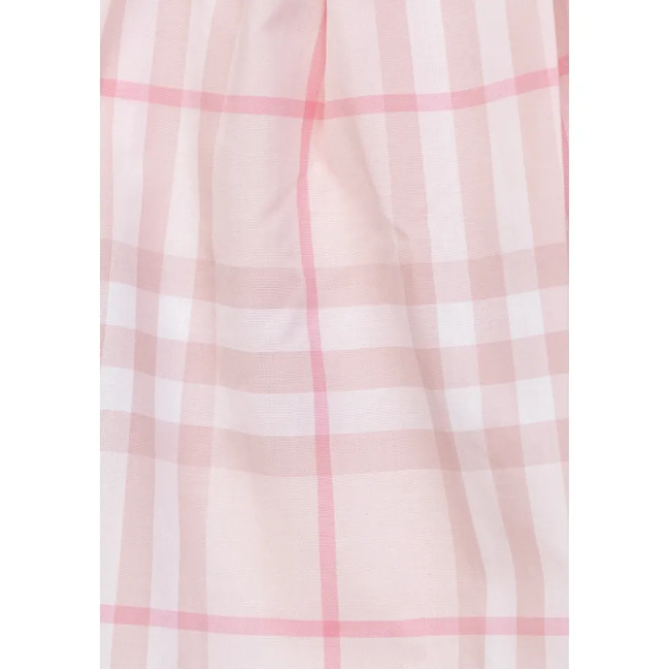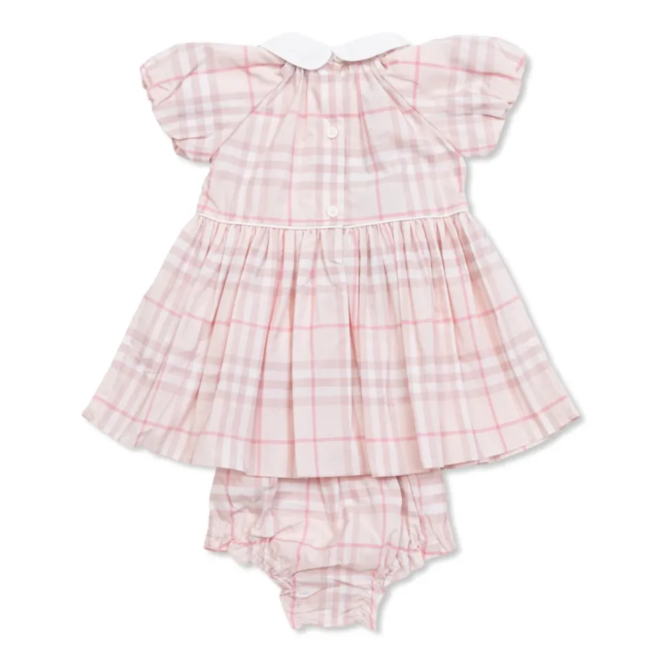 Burberry Aria Dress kombinerer en klassisk, udvidet silhuet med et pink ternet mønster og en afrundet Peter Pan-krave for et tidløst, komfortabelt look. Vigtige egenskaber: Pink | Bomuld | Åndbart stof | Blød fornemmelse | Knaplukning bagpå | Inkluderer matchende bloomers | Let at tage på | Peter Pan-krave | Pufærmer | Rynket, udvidet skørt | Pink ternet mønster | Indsyet logo ved indvendig krave | Sammensætning & pleje: Kjole: 100% bomuld | Krave: 100% bomuld | Bloomers: 100% bomuld | Maskinvask