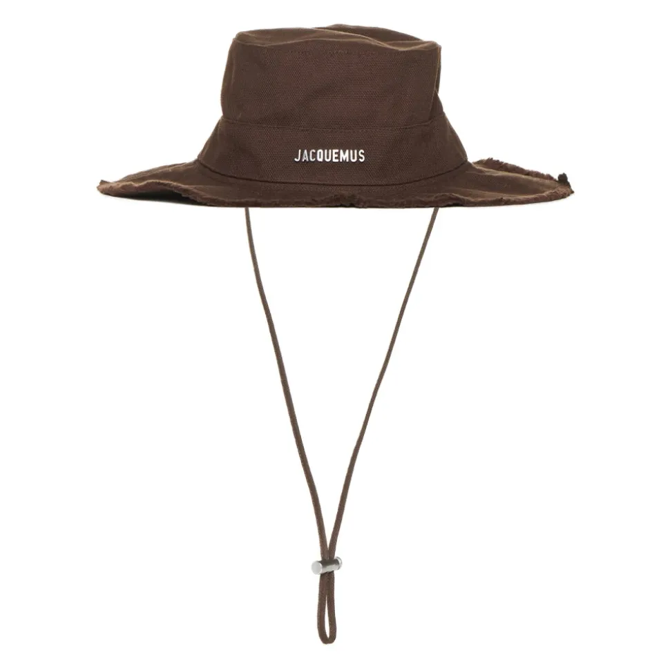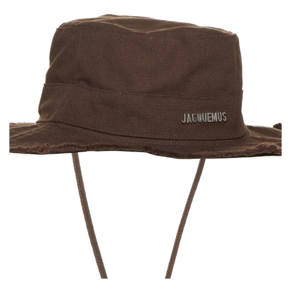 Jacquemus Artichaut Bucket Hat er en bomuldshat med en trevlet, topstikket skygge og en justerbar rem for et afslappet, sæsonbestemt look. Den kombinerer afslappet fiskerstil med et synligt sølvfarvet metallogo til hverdagsbrug. Nøgleattributter: Brun | Bomuld | Åndbart stof | Lang justerbar rem | Snøre-/justerbar lukning | Trevlet skygge | Topstikket skygge | Bucket-/fisker silhuet | Sølvfarvet metallogo | Dimensioner og pasform: Justerbar pasform | Fås i EU-størrelserne 56, 58, 60, 62 | Sammensætning og pleje: 100% bomuld | Foring: 100% bomuld | Håndvaskes koldt eller maskinvaskes koldt på skånsomt program. Må ikke bleges. Hængetørres. Stryges ved lav varme hvis nødvendigt.