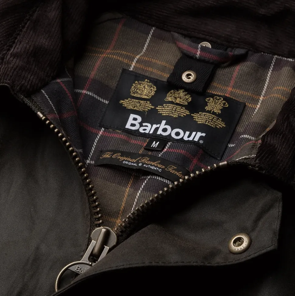 Hold dig stilfuld og beskyttet med denne olivengrønne Barbour ‘Ashby’ jakke til mænd. Lavet af signatur medium-vægt 6oz Sylkoil voksbehandlet bomuld, den har en mat finish og vintage look. ‘Stormfly’ front lukning med nitter og lynlås, klassisk krave med nitter og flere lommer gør den både funktionel og fashionable. Yderstof: Medium-vægt 6oz Sylkoil Voksbehandlet Bomuld; Foring 1: 100% Bomuld; Foring 2: 78% Bomuld, 22% Polyester.