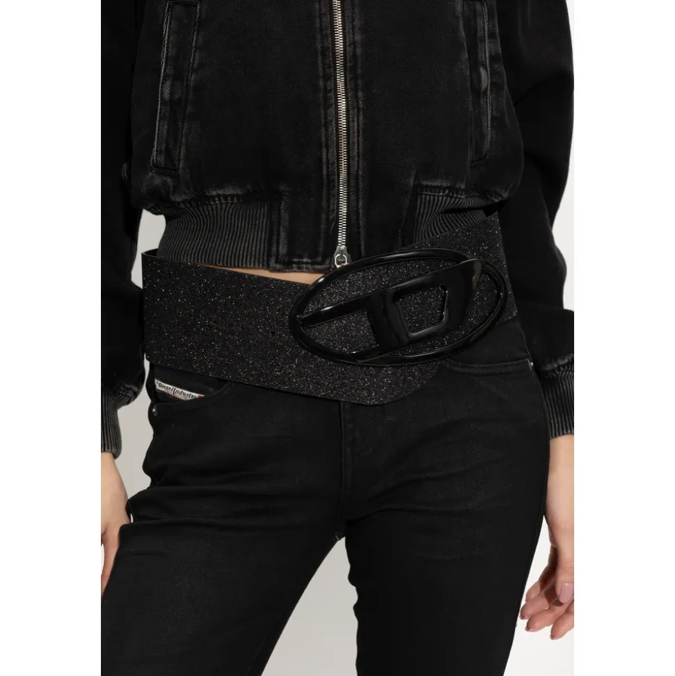 Diesel B-1DR Bæltet er et markant tilbehør, delvist fremstillet af glitterlæder, med et karakteristisk sort spænde formet som det ikoniske Diesel logo. Perfekt til at tilføje et dristigt statement til ethvert outfit. Produkt detaljer: Sort | Glitterlæder | Sort spænde i form af et logo |