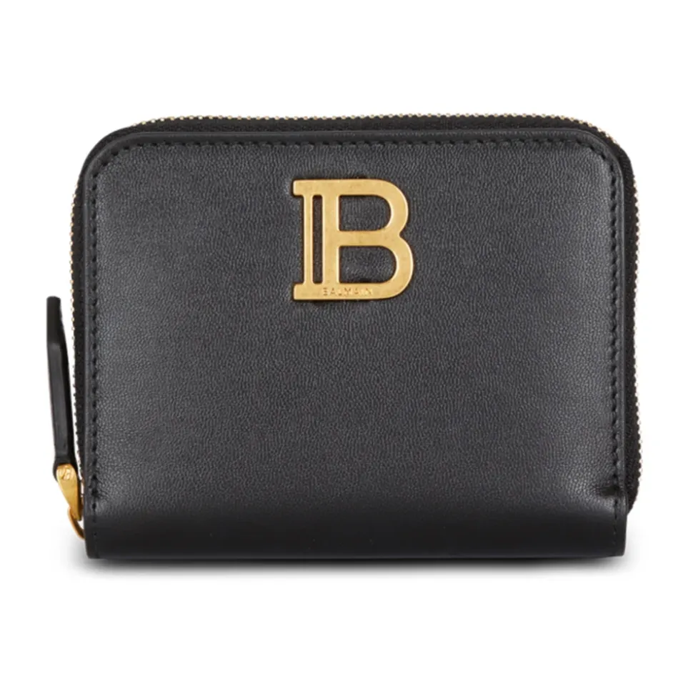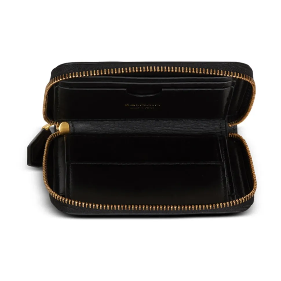 Balmain B-Buzz Læderpung med lynlås er en kompakt hverdagspung med et signaturindgraveret gyldent B-logo og en sikker lynlåslukning til organiseret opbevaring. Designet til praktisk brug, holder den kort og pengesedler pænt adskilt i et elegant kalveskindsdesign. Nøgleattributter: Sort | Kalveskindslæder | Gylden metallisk lynlåslukning med læderstrop | Trykknapdetalje på indersiden af rummet | 3 kortpladser | Seddelrum | Indgraveret gyldent metal Balmain B-logo på forsiden | Glat kalveskindslæderfinish | Gylden metalhardware | Mål og pasform: 11 x 9 x 2 cm | Sammensætning og pleje: 100% kalveskindslæder