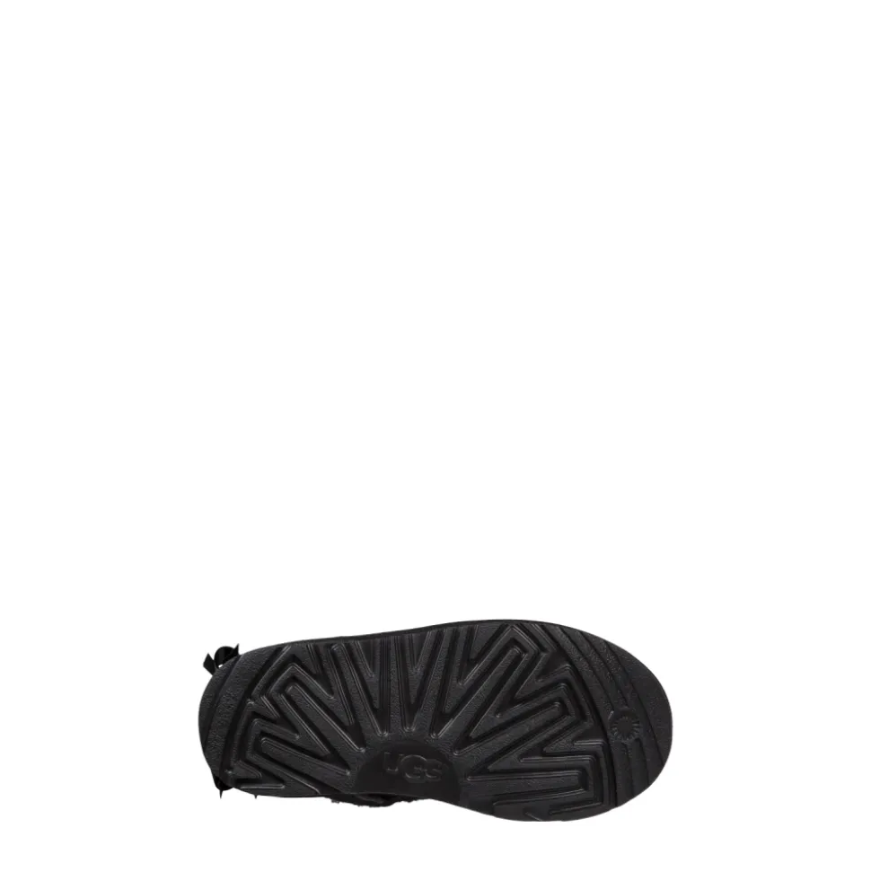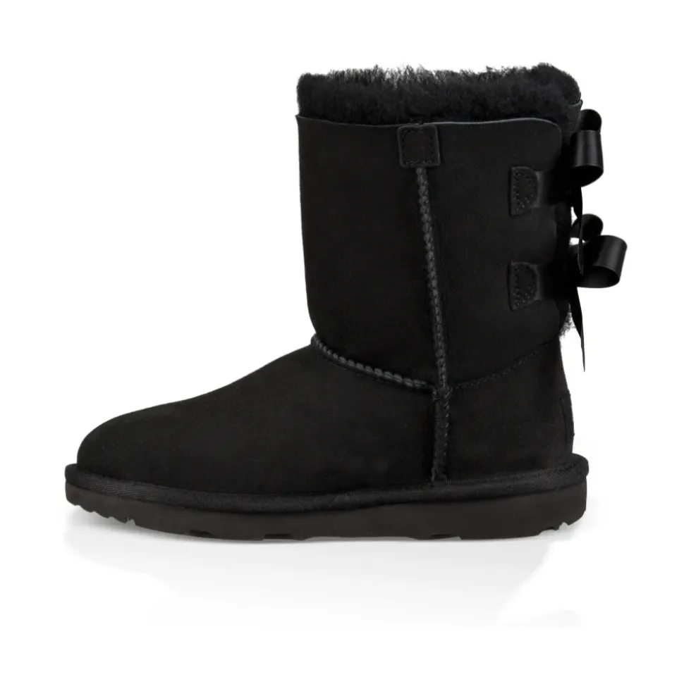Præsenterer de sorte UGG Bailey Bow II støvler til børn, perfekte til din lille modeelsker. Disse støvler er lavet af førsteklasses ruskind og har en behagelig pelsindersål for ultimativ komfort. Den fleksible Treadlite-ydersål af gummi giver fremragende trækkraft, mens det vand- og pletbestandige overdel sikrer holdbarhed. Med en læderhælplade prydet med UGG-logoet udstråler disse støvler høj kvalitet. Den skumindlægssål og overlock-søm-detaljering tilføjer ekstra stil og støtte. Komplet med silkebånd på bagsiden er disse støvler et must-have for enhver stilbevidst lille pige. Skafthøjde: 15 cm.